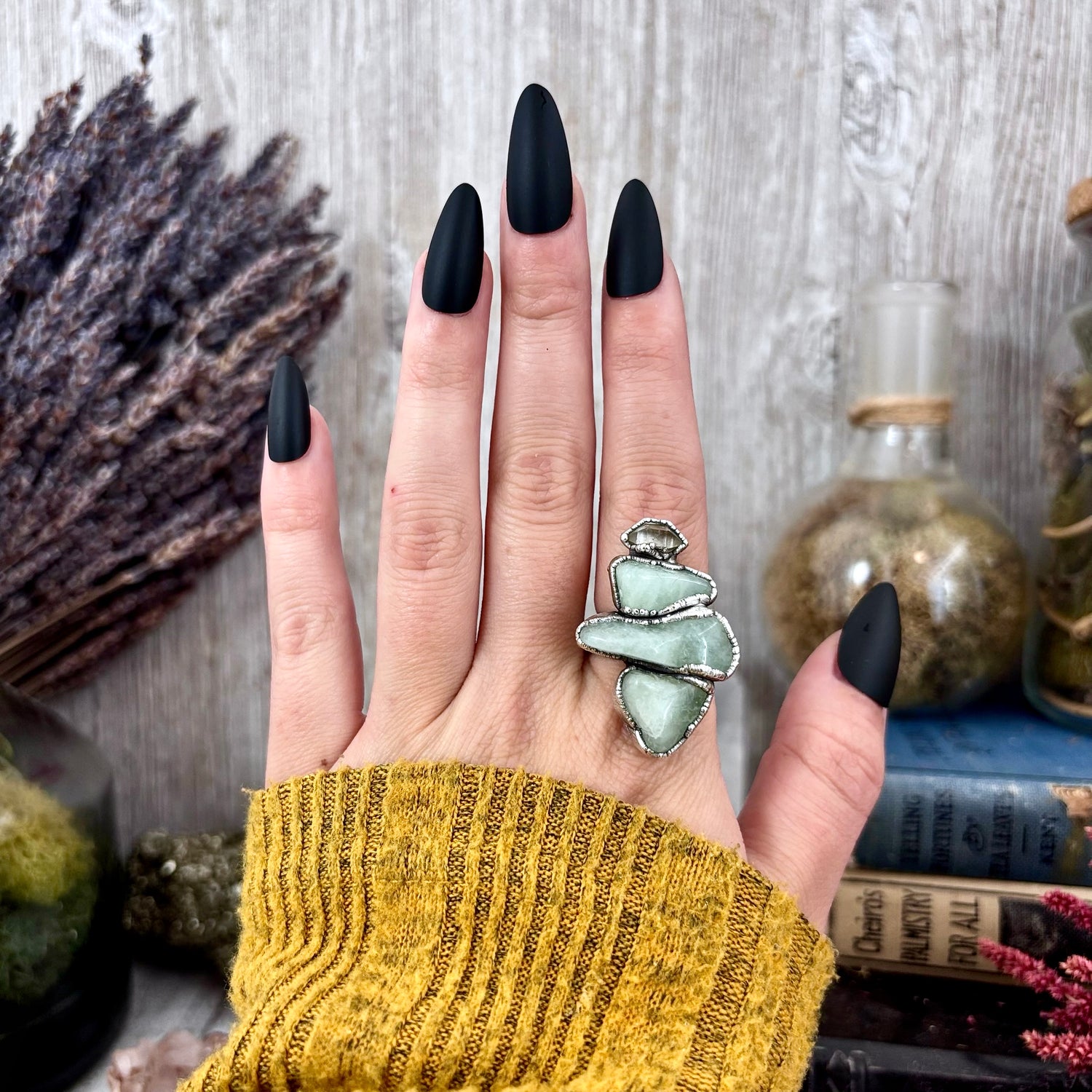 Size 8 Green Sea Glass Ring Set in Fine Silver / Foxlark Collection - One of a Kind