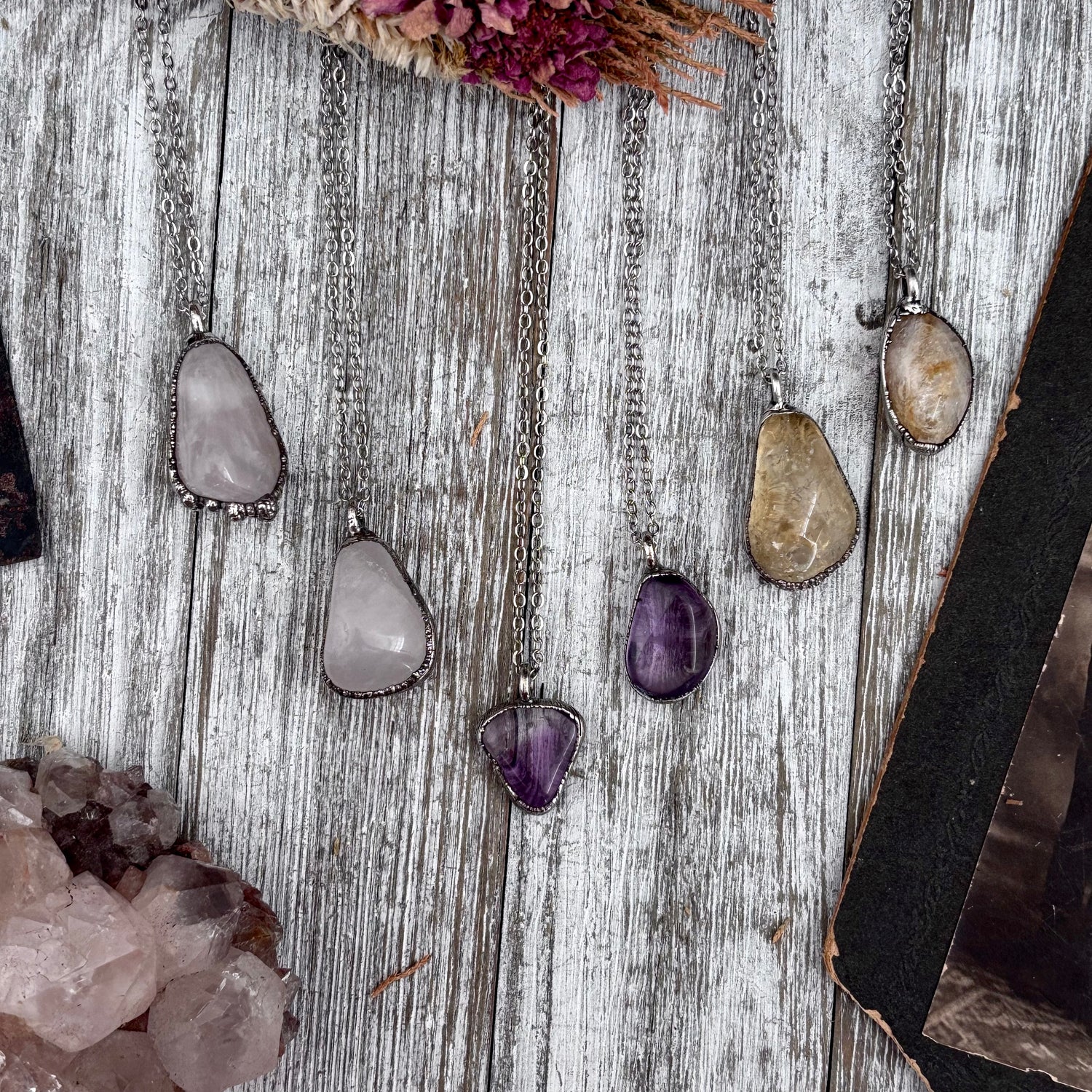 My handcrafted collection of crystal statement necklaces formed from natural stones, crystals and metal....