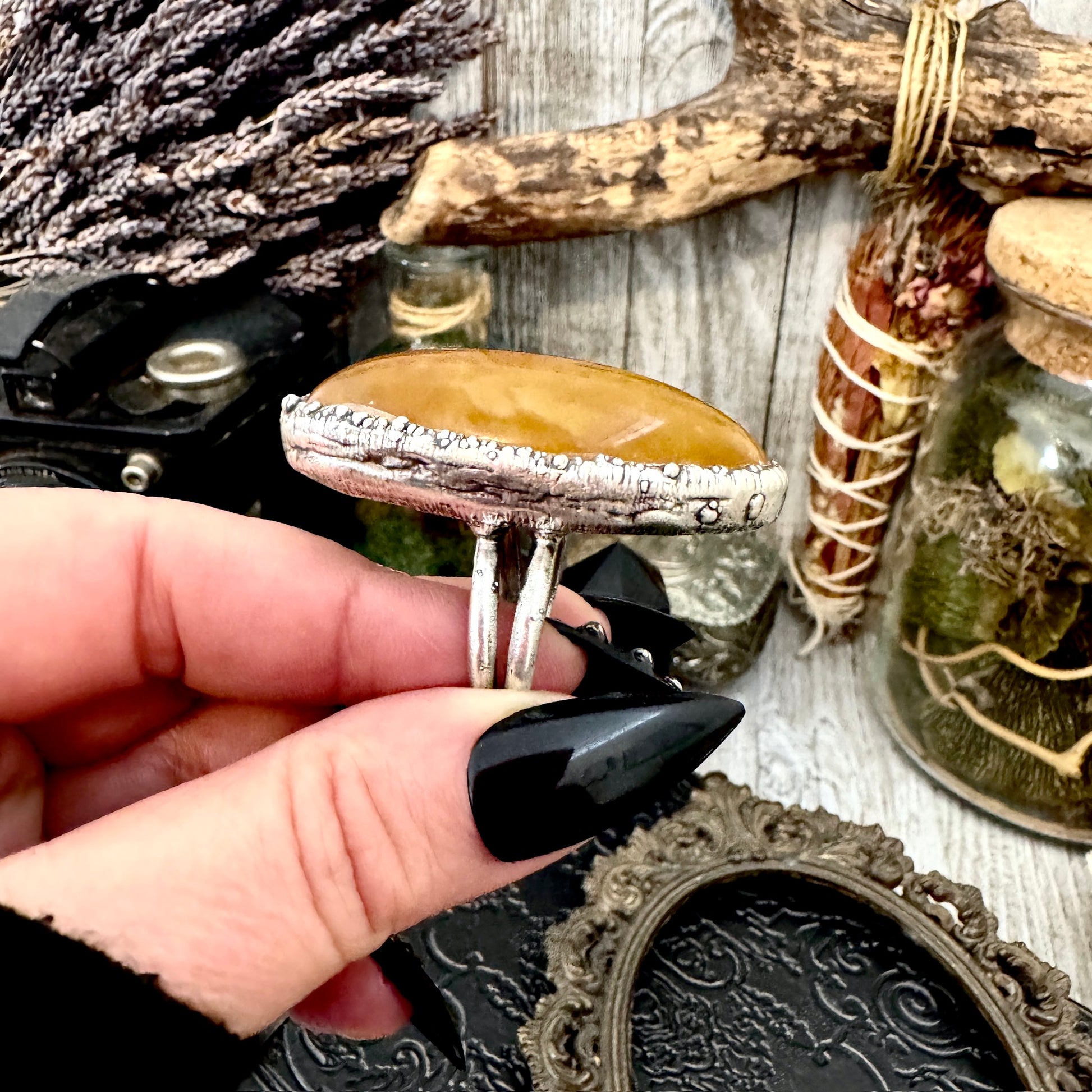 Get in touch with our contact page or you can always contact us on our FOXLARK Instagram www.instagram.com/foxlark or Facebook pages www.Facebook.com/foxlark , or through email foxlarkalchemy@gmail.comSlip a little magic onto your hand with this Baltic Amber fine silver ring. Sleek yet powerful, it radiates with energy, making it the perfect piece for anyone who loves a touch of power with their mysticism.