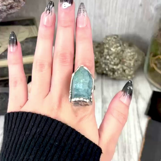 Aqua Aura Quartz Crystal Ring Set in Fine Silver Size 7.5 / Foxlark Collection - One of a Kind