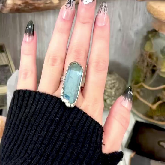 Aqua Aura Quartz Crystal Ring Set in Fine Silver Size 9 / Foxlark Collection - One of a Kind