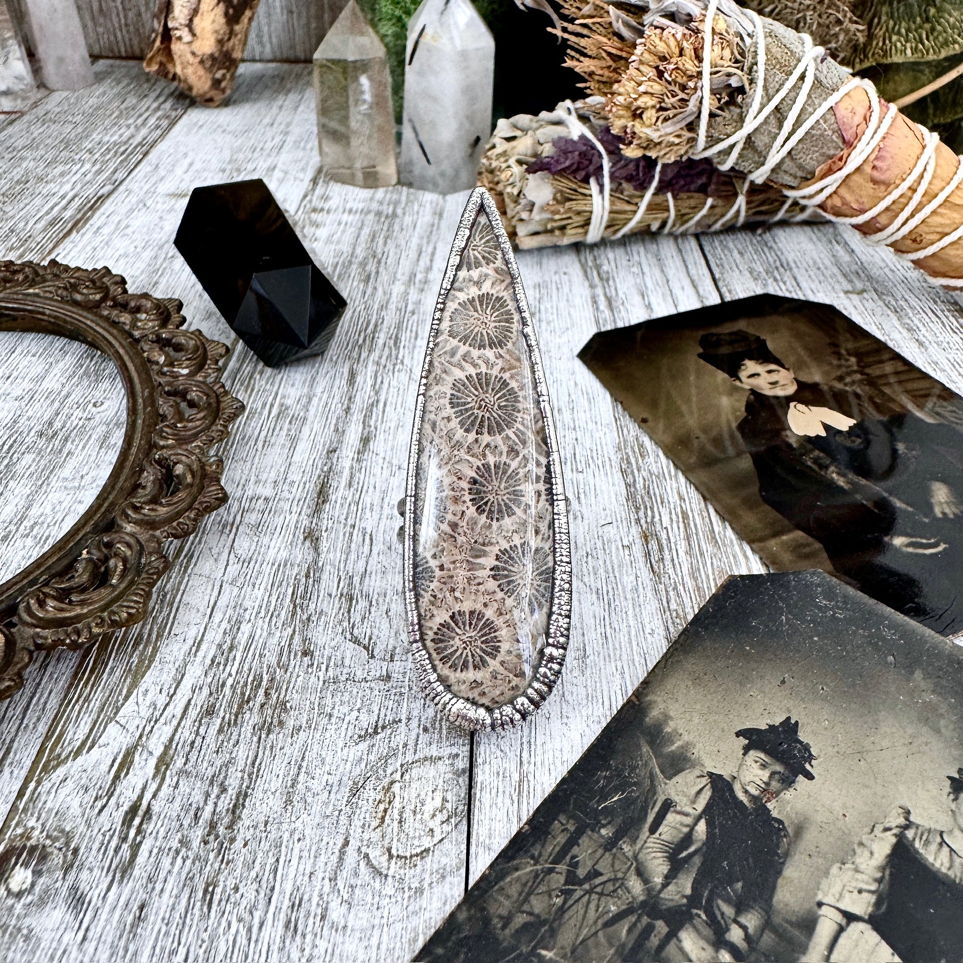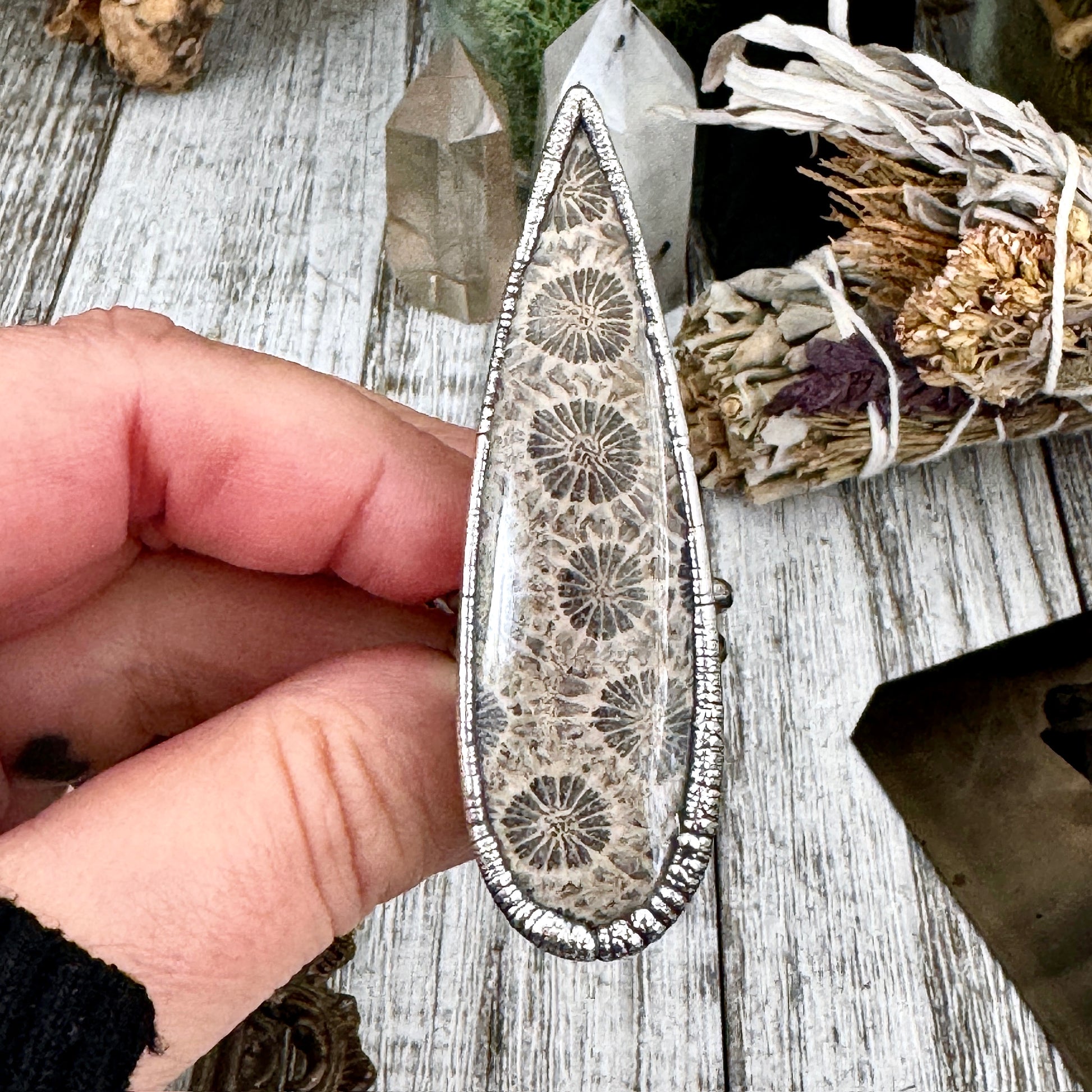 Get in touch with our contact page or you can always contact us on our FOXLARK Instagram www.instagram.com/foxlark or Facebook pages www.Facebook.com/foxlark , or through email foxlarkalchemy@gmail.comEarthy, ancient, and full of natural beauty—this fine silver fossilized coral ring is a true statement piece. With its intricate fossil patterns frozen in time, this ring connects you to the past while adding a unique, organic touch to your style.