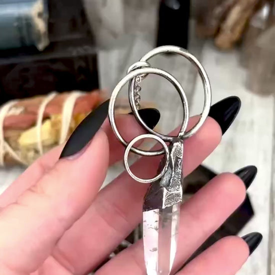 Get in touch with our contact page or you can always contact us on our FOXLARK Instagram www.instagram.com/foxlark or Facebook pages www.Facebook.com/foxlark , or through email foxlarkalchemy@gmail.comThis necklace features a Clear Quartz crystal set in fine silver. Known as the master healer, Clear Quartz enhances clarity, energy, and intention. Designed for those with an alternative style, it adds a sleek touch while supporting spiritual growth and focus.