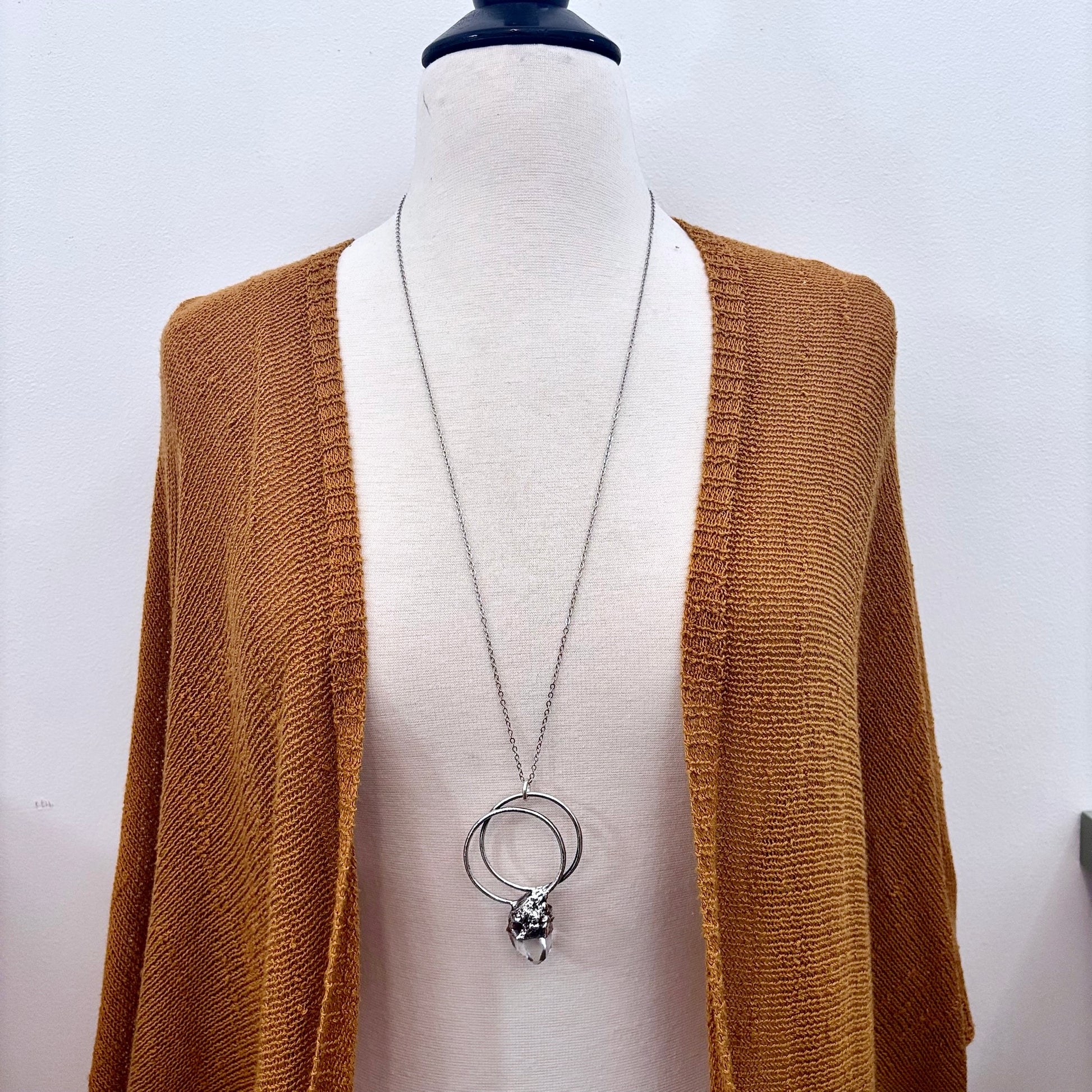 Get in touch with our contact page or you can always contact us on our FOXLARK Instagram www.instagram.com/foxlark or Facebook pages www.Facebook.com/foxlark , or through email foxlarkalchemy@gmail.comThis necklace features a Clear Quartz crystal set in fine silver. Known as the master healer, Clear Quartz enhances clarity, energy, and intention. Designed for those with an alternative style, it adds a sleek touch while supporting spiritual growth and focus.