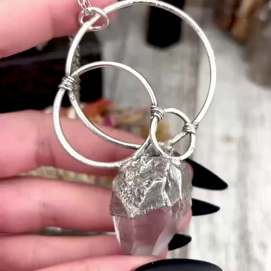 Big Raw Clear Quartz Crystal Necklace in Fine Silver / Foxlark Collection - One of a Kind
