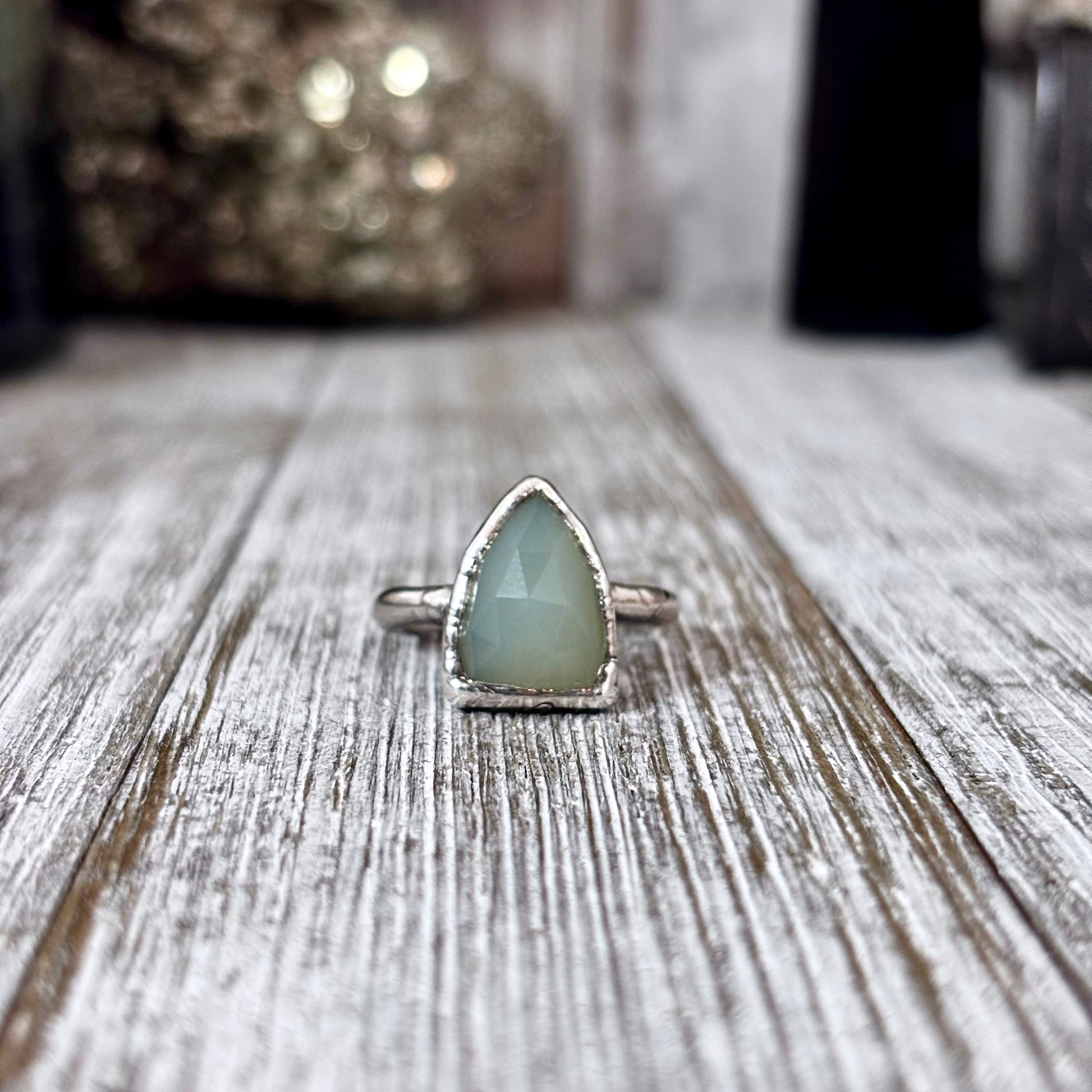 Get in touch with our contact page or you can always contact us on our FOXLARK Instagram www.instagram.com/foxlark or Facebook pages www.Facebook.com/foxlark , or through email foxlarkalchemy@gmail.comThis dainty Blue Chalcedony ring, set in fine silver, radiates soft, serene energy with a dreamy glow. Known for its calming presence, Blue Chalcedony promotes peace, communication, and emotional clarity. Gentle, soothing, and effortlessly cool—perfect for those who speak with intention and move through life with quiet confidence.