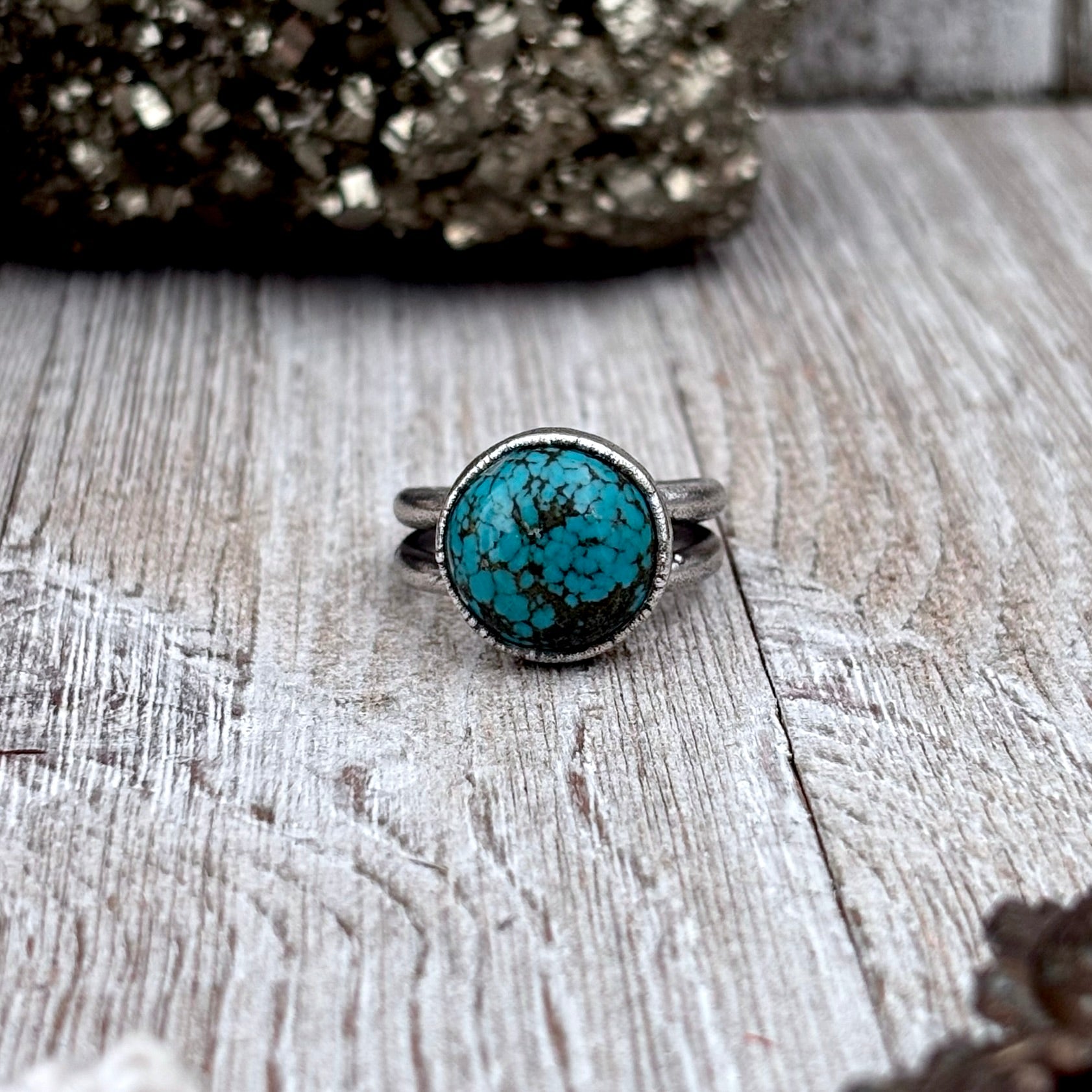 Blue Turquoise Stone Ring Fine Silver Size 8.5 / Foxlark Collection - One of a Kind