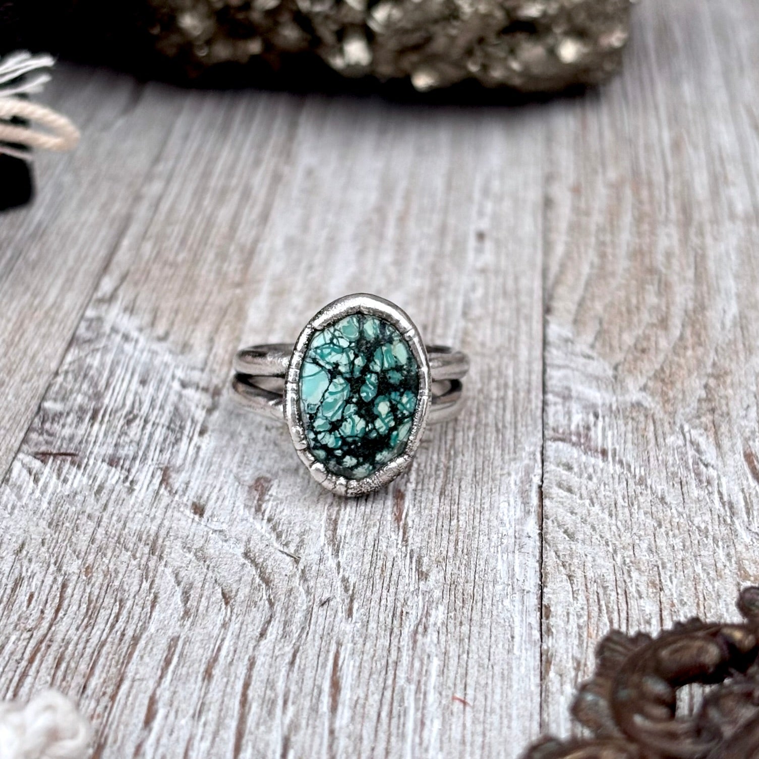 Blue Turquoise Stone Ring Fine Silver Size 9.5 / Foxlark Collection - One of a Kind