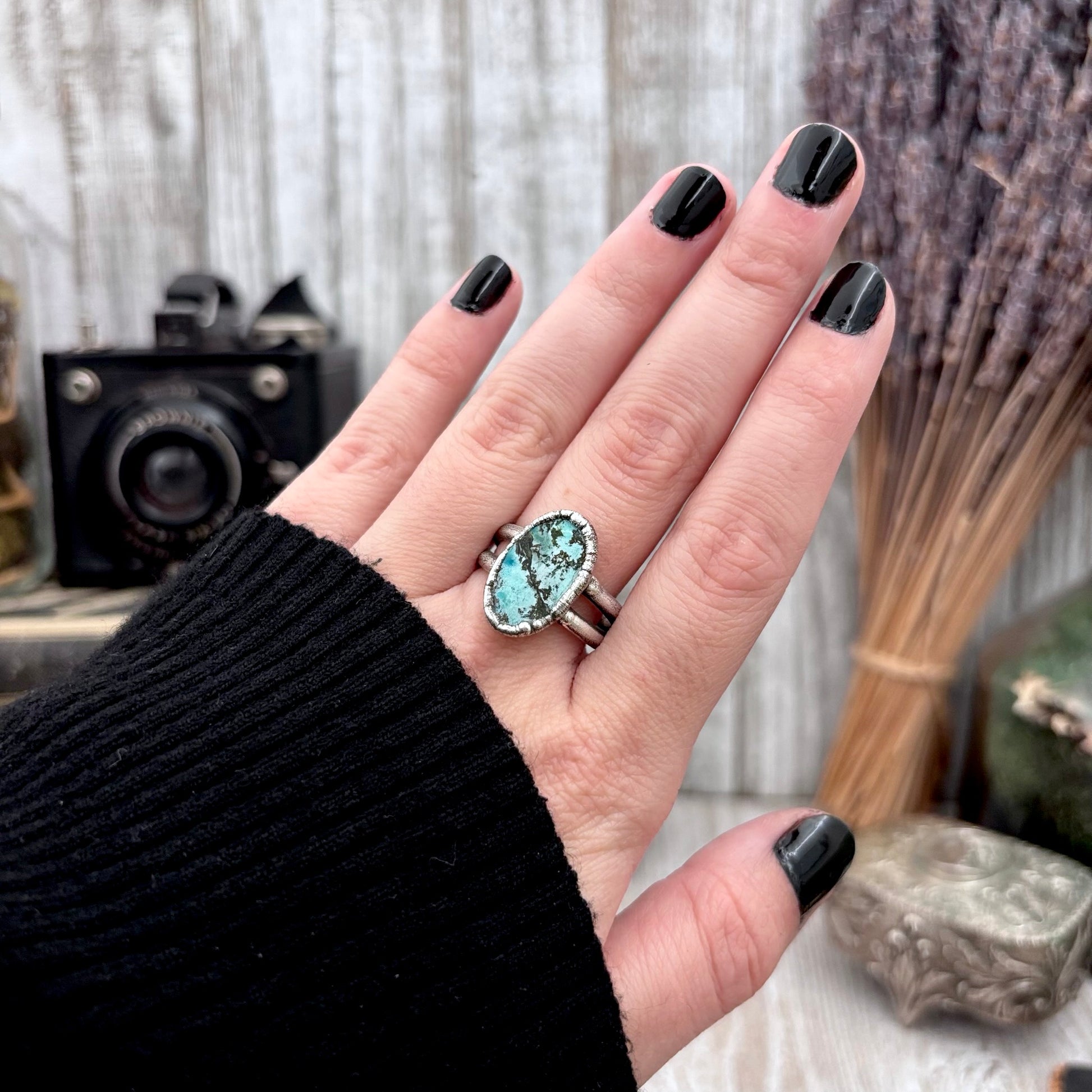 Blue Turquoise Stone Ring Fine Silver Size 9.5 / Foxlark Collection - One of a Kind
