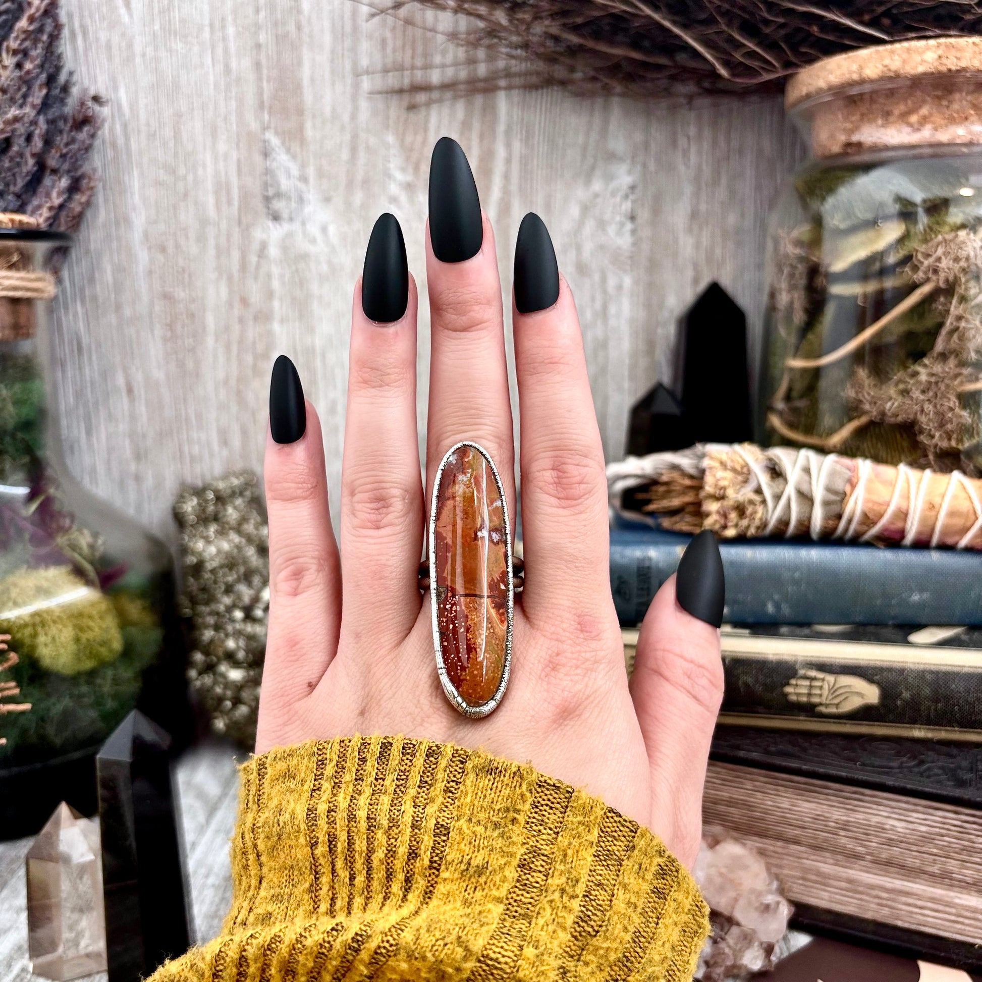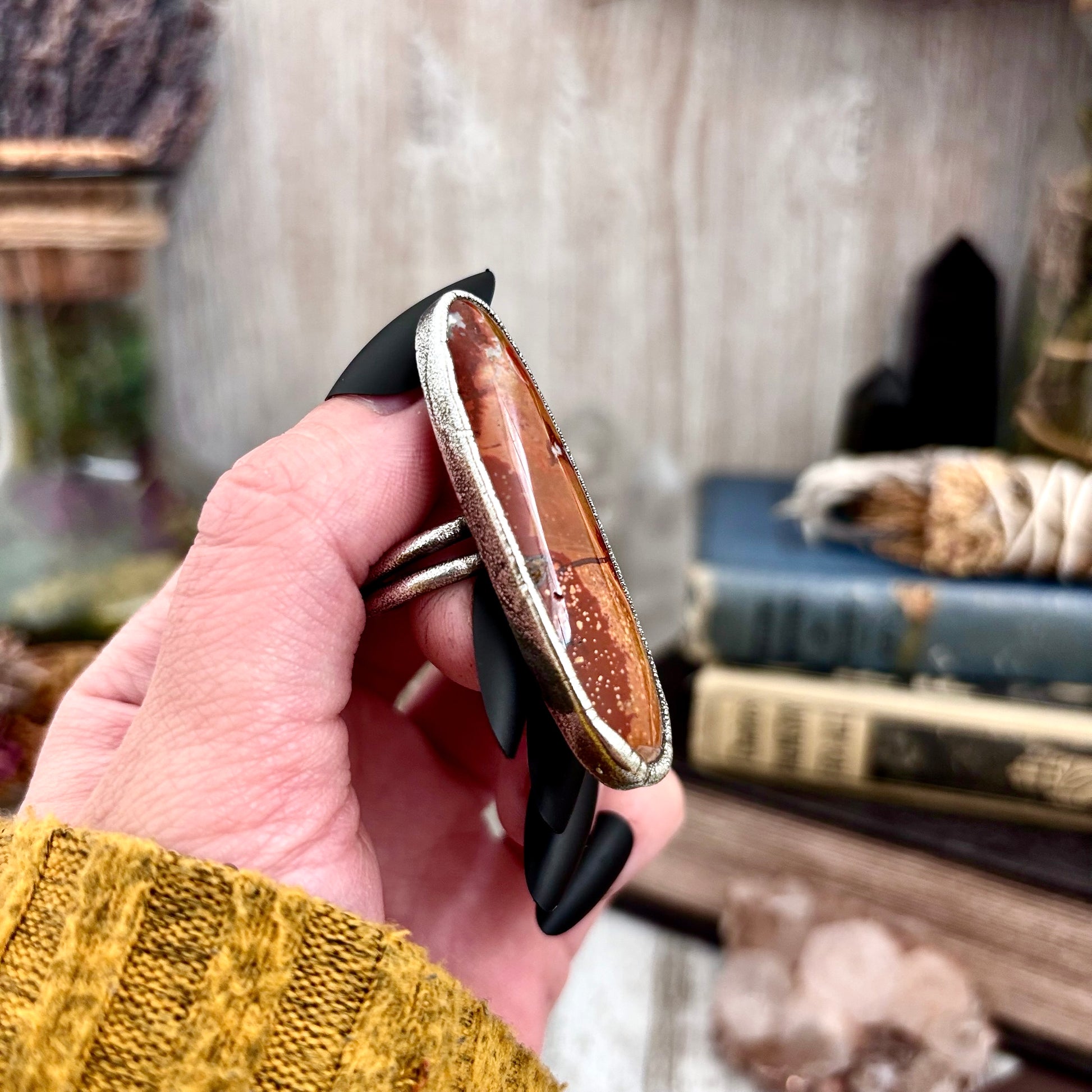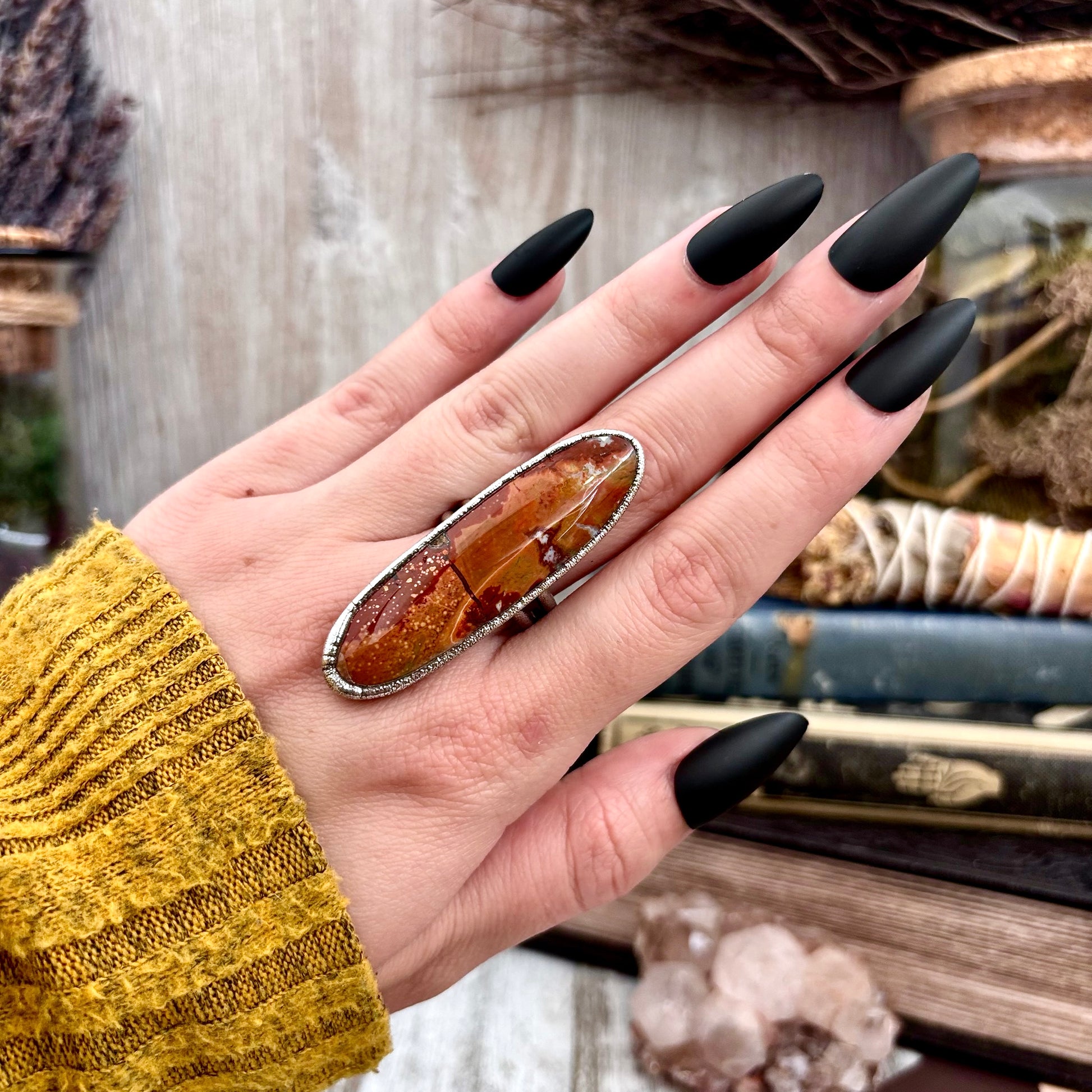 Get in touch with our contact page or you can always contact us on our FOXLARK Instagram www.instagram.com/foxlark or Facebook pages www.Facebook.com/foxlark , or through email foxlarkalchemy@gmail.comGrounded, warm, and full of steady energy—this fine silver Brenda jasper ring is all about strength and stability. With its earthy tones and natural patterns, this stone is perfect for staying centered while embracing life’s adventures.