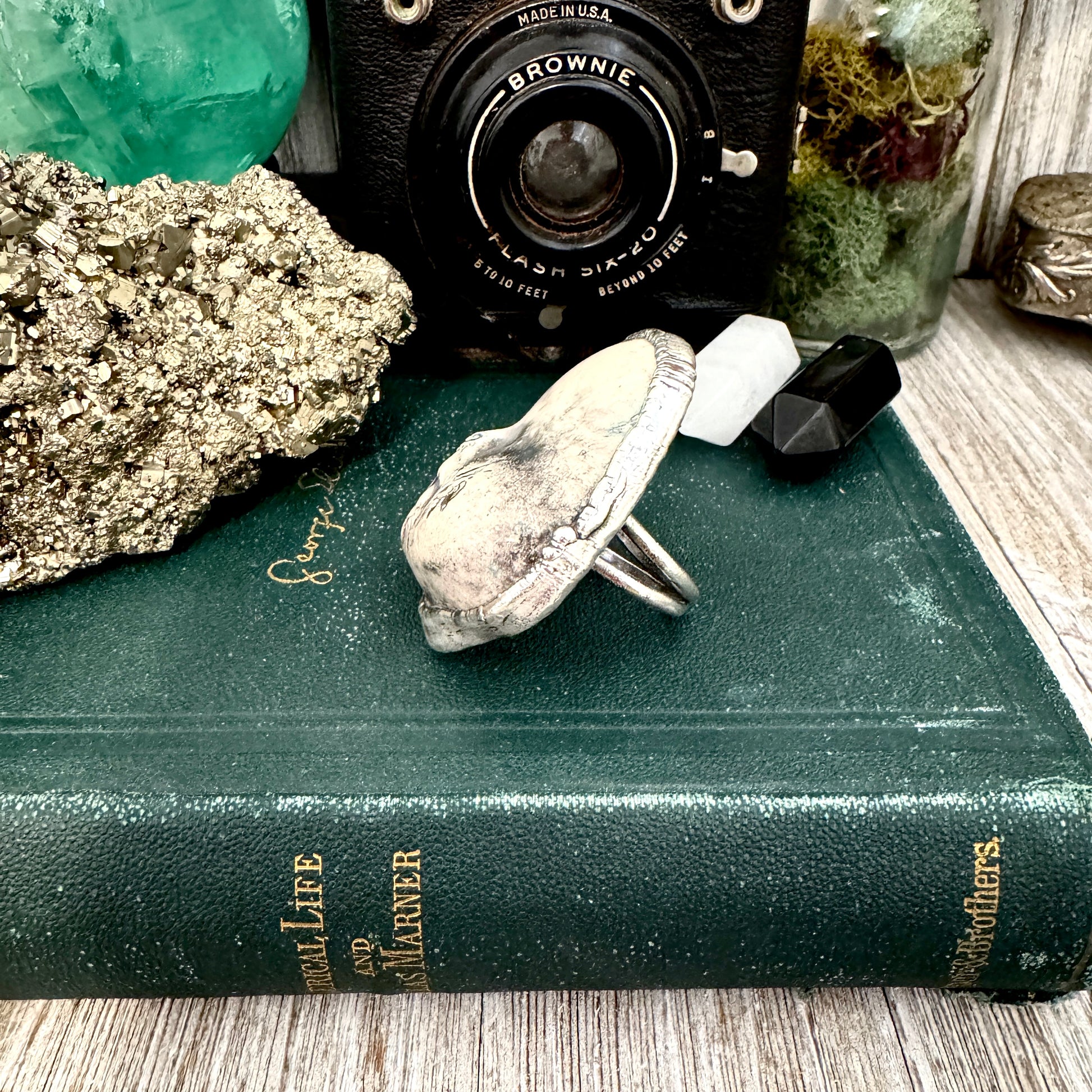 Get in touch with our contact page or you can always contact us on our FOXLARK Instagram www.instagram.com/foxlark or Facebook pages www.Facebook.com/foxlark , or through email foxlarkalchemy@gmail.comCeramic baby doll face set in fine silver and given a vintage patina turning it into a unique statement ring. This handmade ring is perfect worn alone or layered with other pieces.