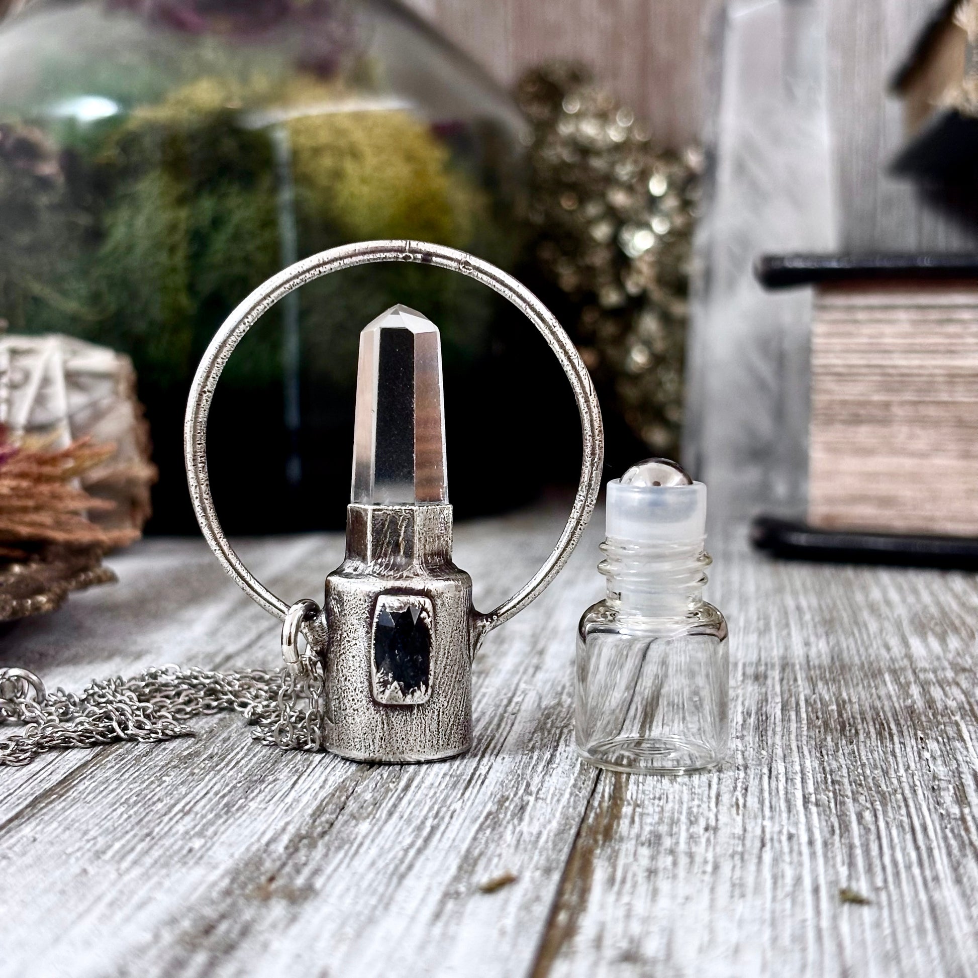 Get in touch with our contact page or you can always contact us on our FOXLARK Instagram www.instagram.com/foxlark or Facebook pages www.Facebook.com/foxlark , or through email foxlarkalchemy@gmail.comClear, aligned, and full of focused energy—this fine silver rollerball necklace pairs Clear Quartz with Blue Kyanite, merging mental clarity with energetic balance in a functional crystal statement piece designed for communication and intention.