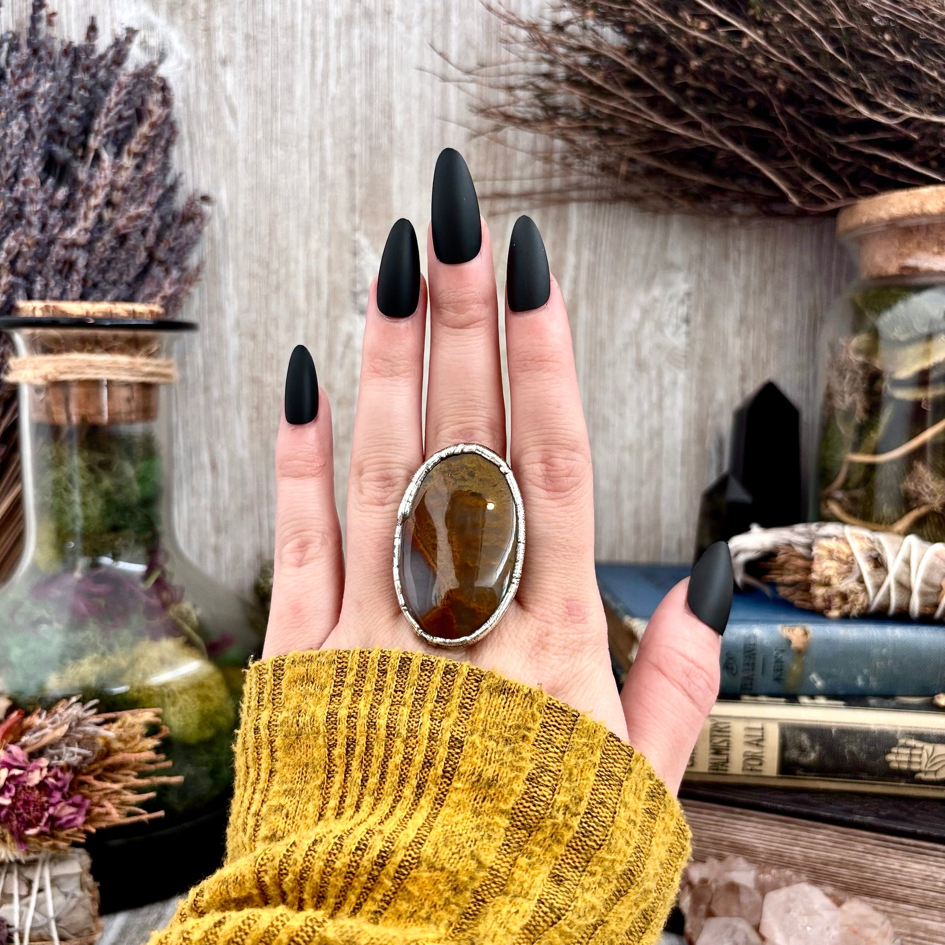 Get in touch with our contact page or you can always contact us on our FOXLARK Instagram www.instagram.com/foxlark or Facebook pages www.Facebook.com/foxlark , or through email foxlarkalchemy@gmail.comThis ring features a Fancy Moss Agate crystal set in fine silver. Known for its grounding energy, Fancy Moss Agate promotes growth, stability, and a deep connection to nature. Designed for those with an alternative style, it adds an earthy touch while supporting balance and renewal.