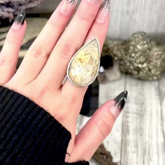 Fossilized Coral Crystal Ring Fine Silver Size 10 / Foxlark Collection - One of a Kind