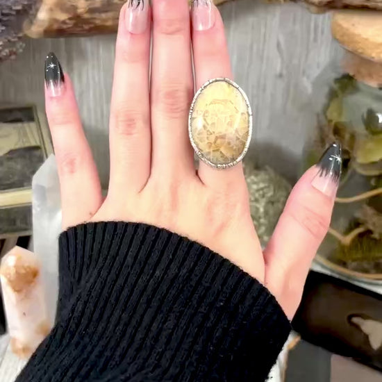Fossilized Coral Crystal Ring Fine Silver Size 7 / Foxlark Collection - One of a Kind