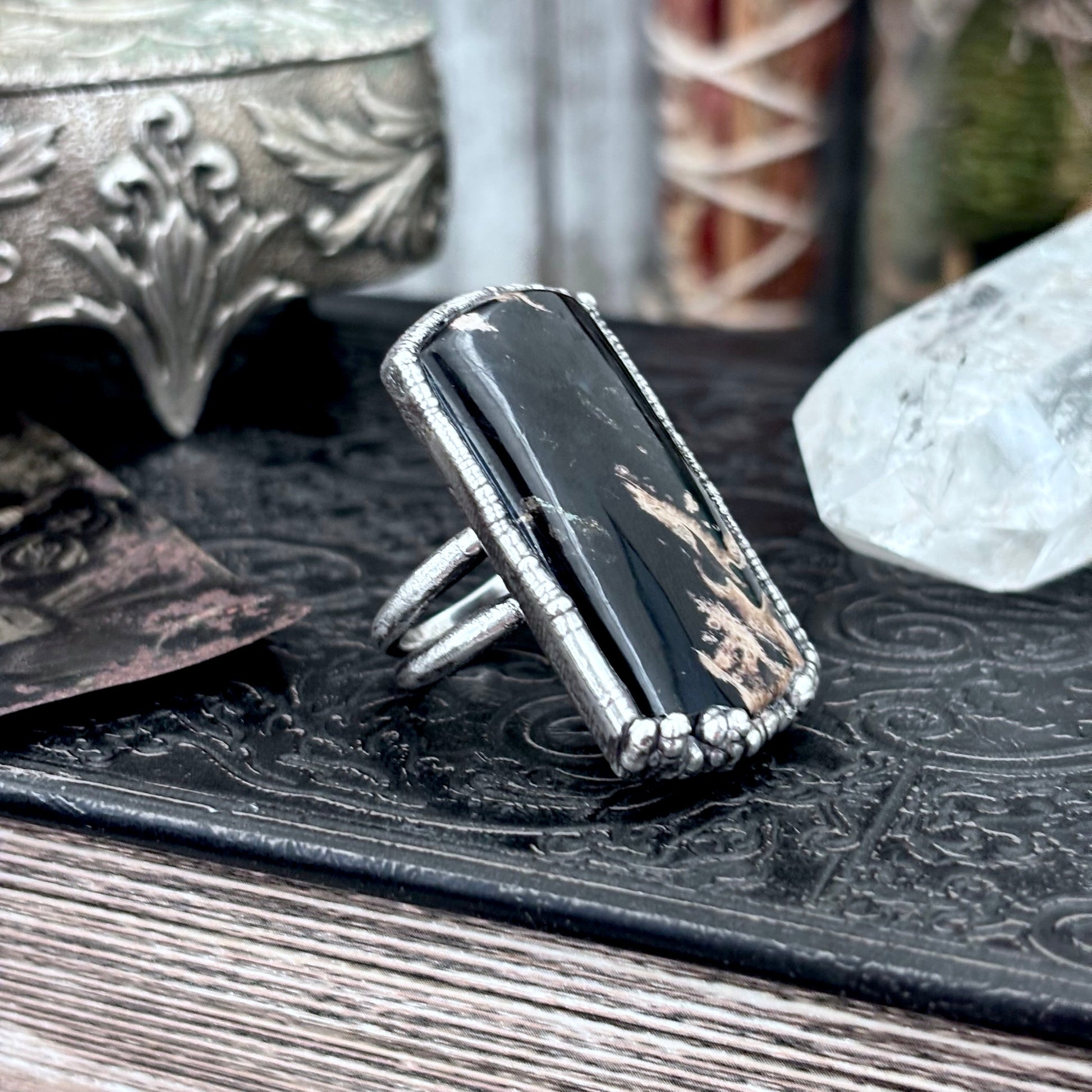 Get in touch with our contact page or you can always contact us on our FOXLARK Instagram www.instagram.com/foxlark or Facebook pages www.Facebook.com/foxlark , or through email foxlarkalchemy@gmail.comSlip a little magic onto your hand with this crystal fine silver ring. Sleek yet powerful, it radiates with energy, making it the perfect piece for anyone who loves a touch of power with their mysticism.