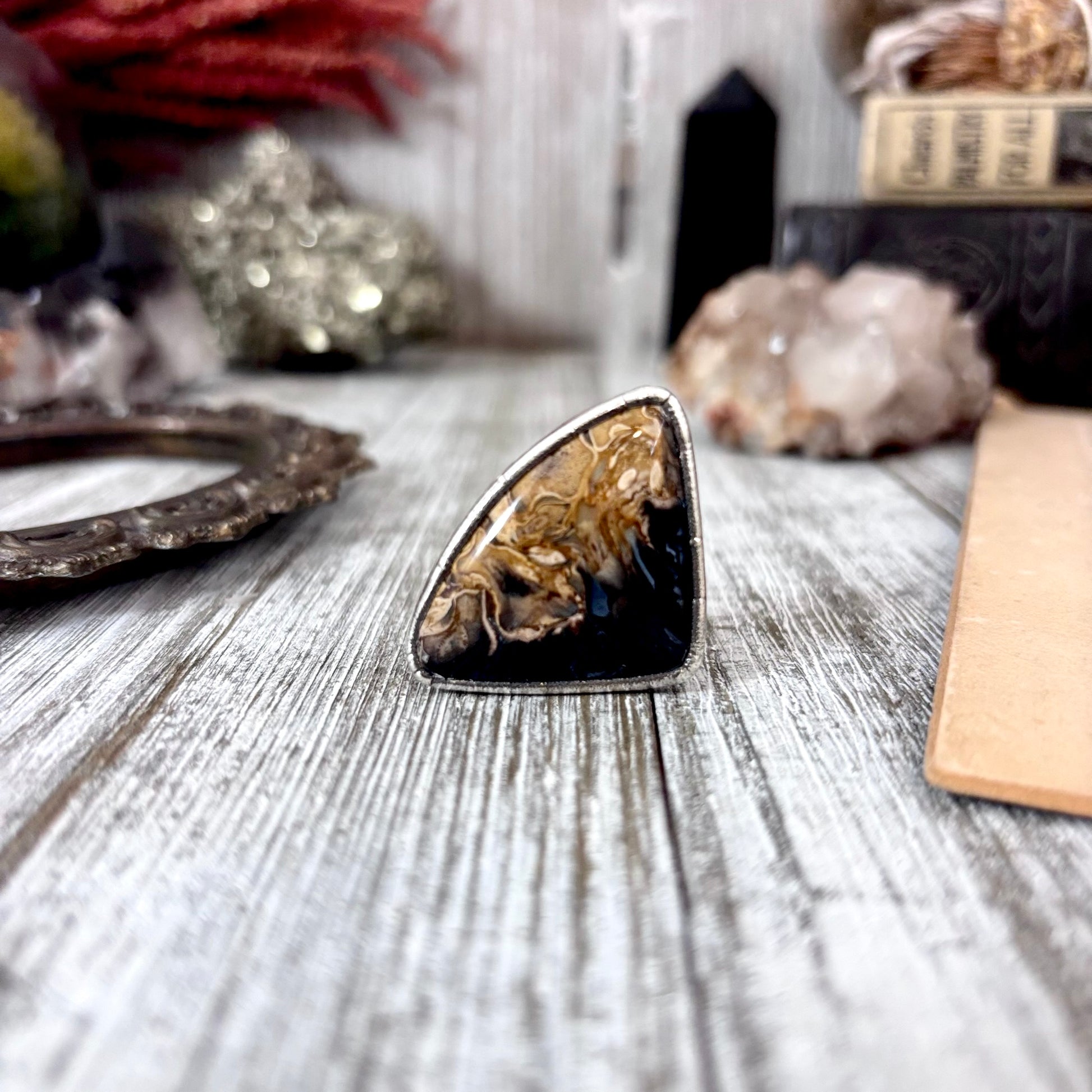 Fossilized Palm Root Crystal Ring Fine Silver Size 9 / Foxlark Collection - One of a Kind