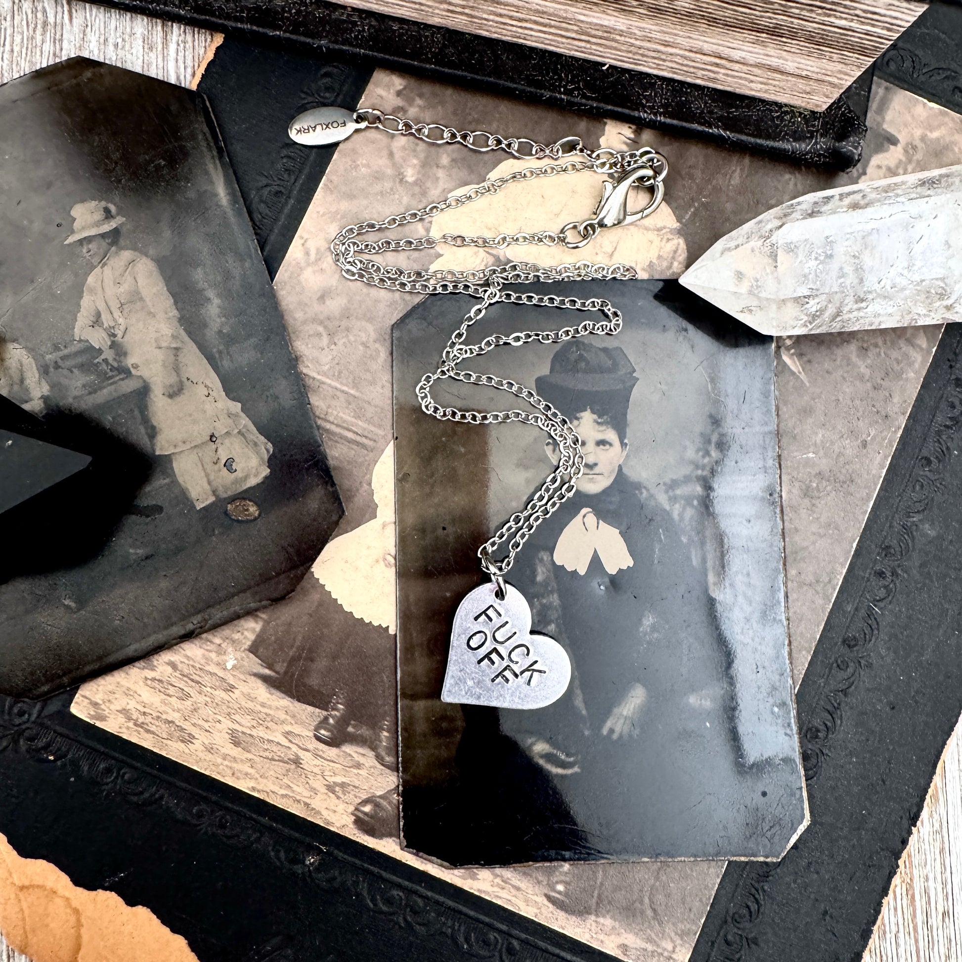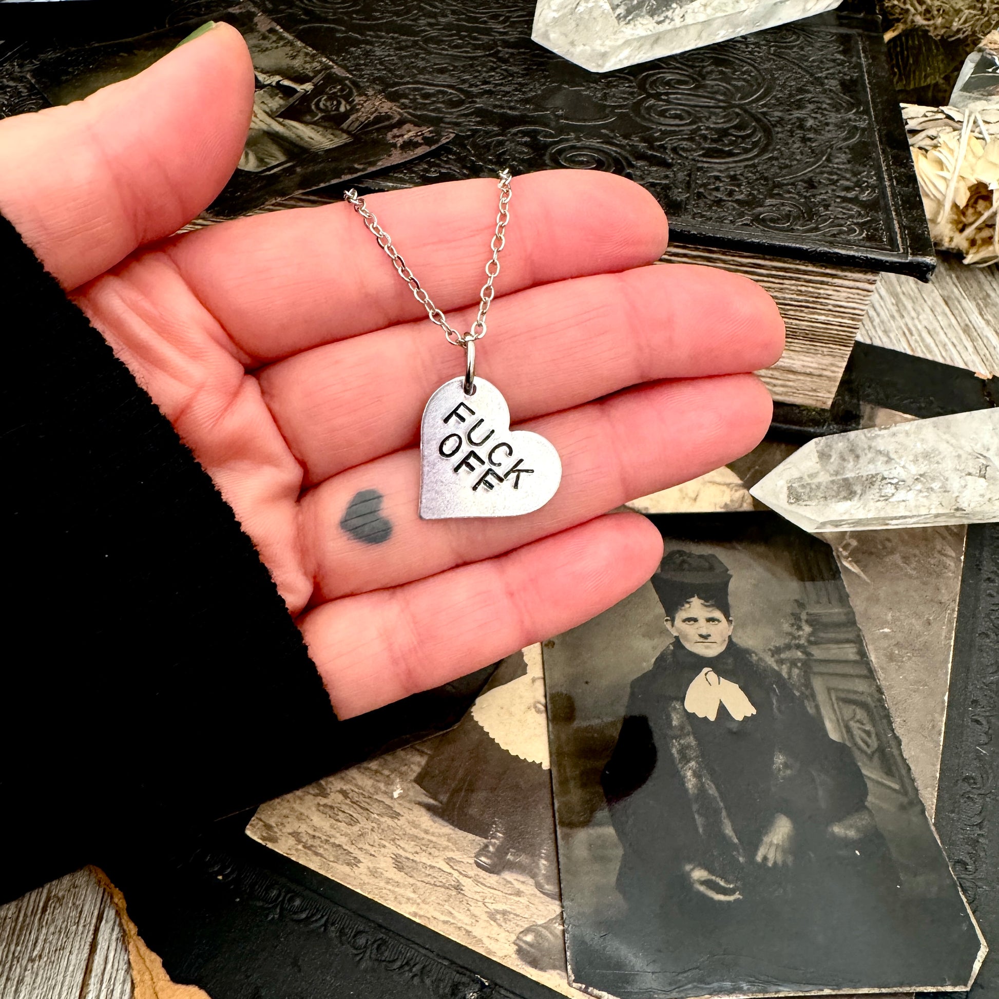Get in touch with our contact page or you can always contact us on our FOXLARK Instagram www.instagram.com/foxlark or Facebook pages www.Facebook.com/foxlark , or through email foxlarkalchemy@gmail.comHand Stamped FUCK OFF Heart Necklace