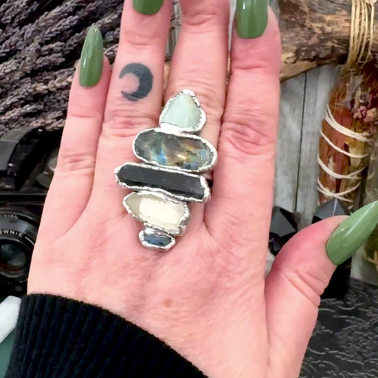 Get in touch with our contact page or you can always contact us on our FOXLARK Instagram www.instagram.com/foxlark or Facebook pages www.Facebook.com/foxlark , or through email foxlarkalchemy@gmail.comStacked, layered, and a little excessive in the best way. These multi-stone rings are built from hand-selected stones set in fine silver, each one completely one of a kind. Made for hands that don’t do subtle.