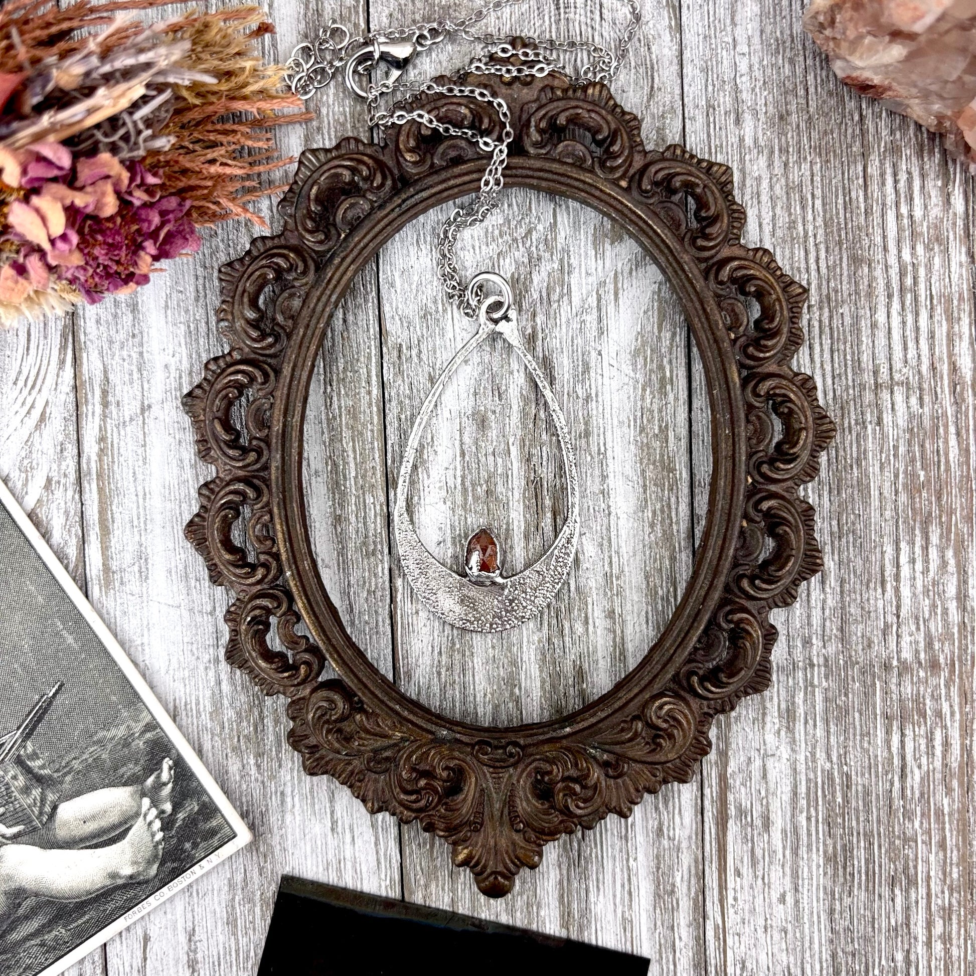 Get in touch with our contact page or you can always contact us on our FOXLARK Instagram www.instagram.com/foxlark or Facebook pages www.Facebook.com/foxlark , or through email foxlarkalchemy@gmail.comOrange Kyanite set in fine silver and given a vintage patina turning it into a unique crystal statement necklace. This handmade crystal necklace is perfect worn alone or layered with with other pieces.