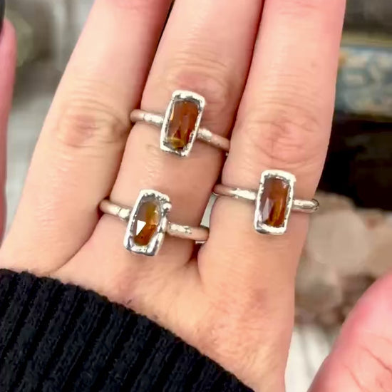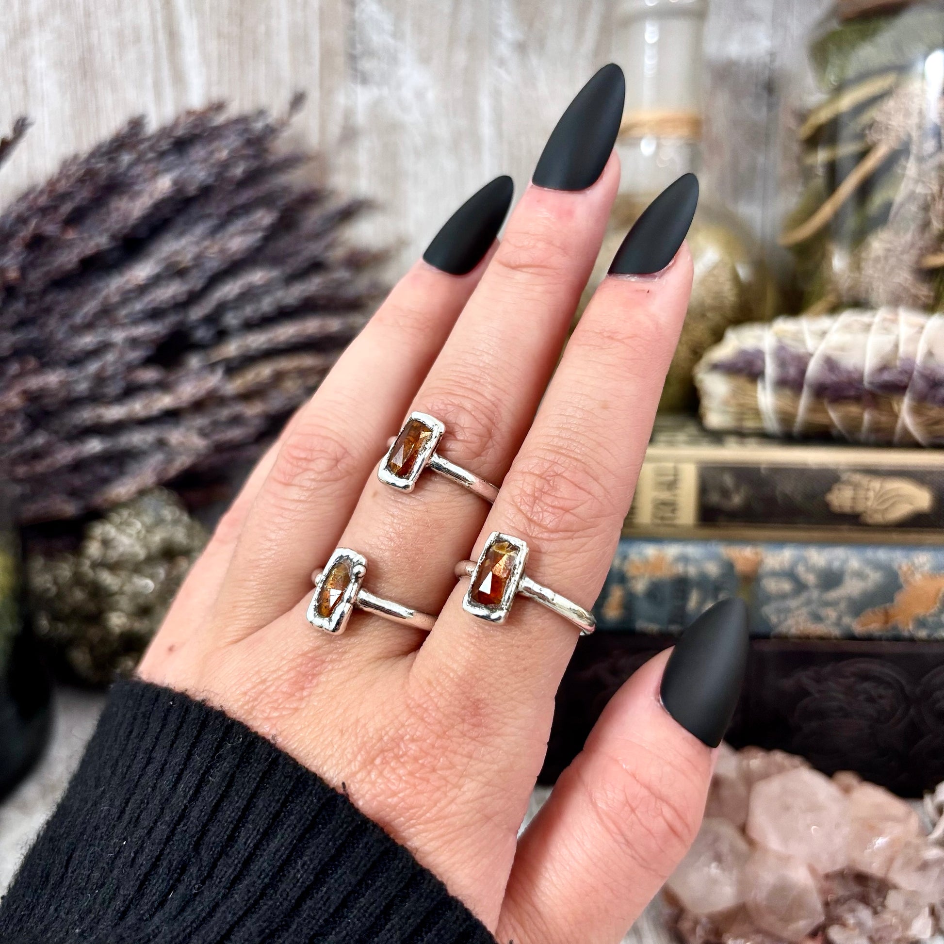 Orange Kyanite Ring Fine Silver Small Faceted Stone Ring Size 5 6 7 8 9 10 11 / Foxlark Collection