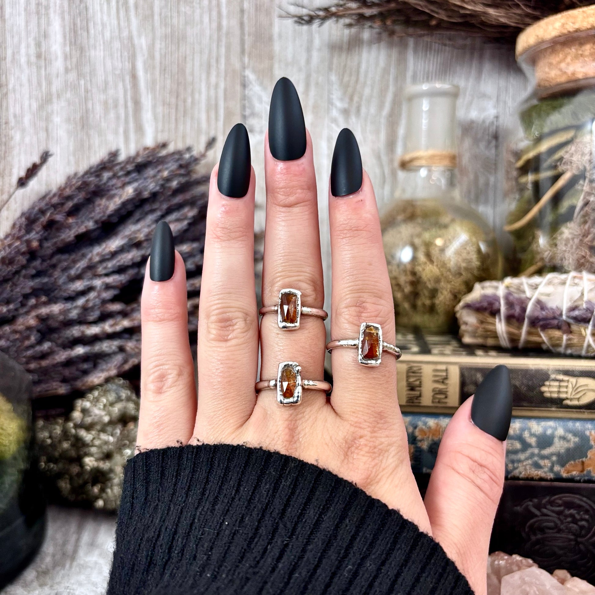 Get in touch with our contact page or you can always contact us on our FOXLARK Instagram www.instagram.com/foxlark or Facebook pages www.Facebook.com/foxlark , or through email foxlarkalchemy@gmail.comThis dainty Orange Kyanite ring radiates warm energy and bold elegance. With its vibrant hue and natural shimmer, Orange Kyanite sparks creativity, motivation, and inner strength. Fiery, uplifting, and effortlessly cool—perfect for those who lead with passion and shine from within.