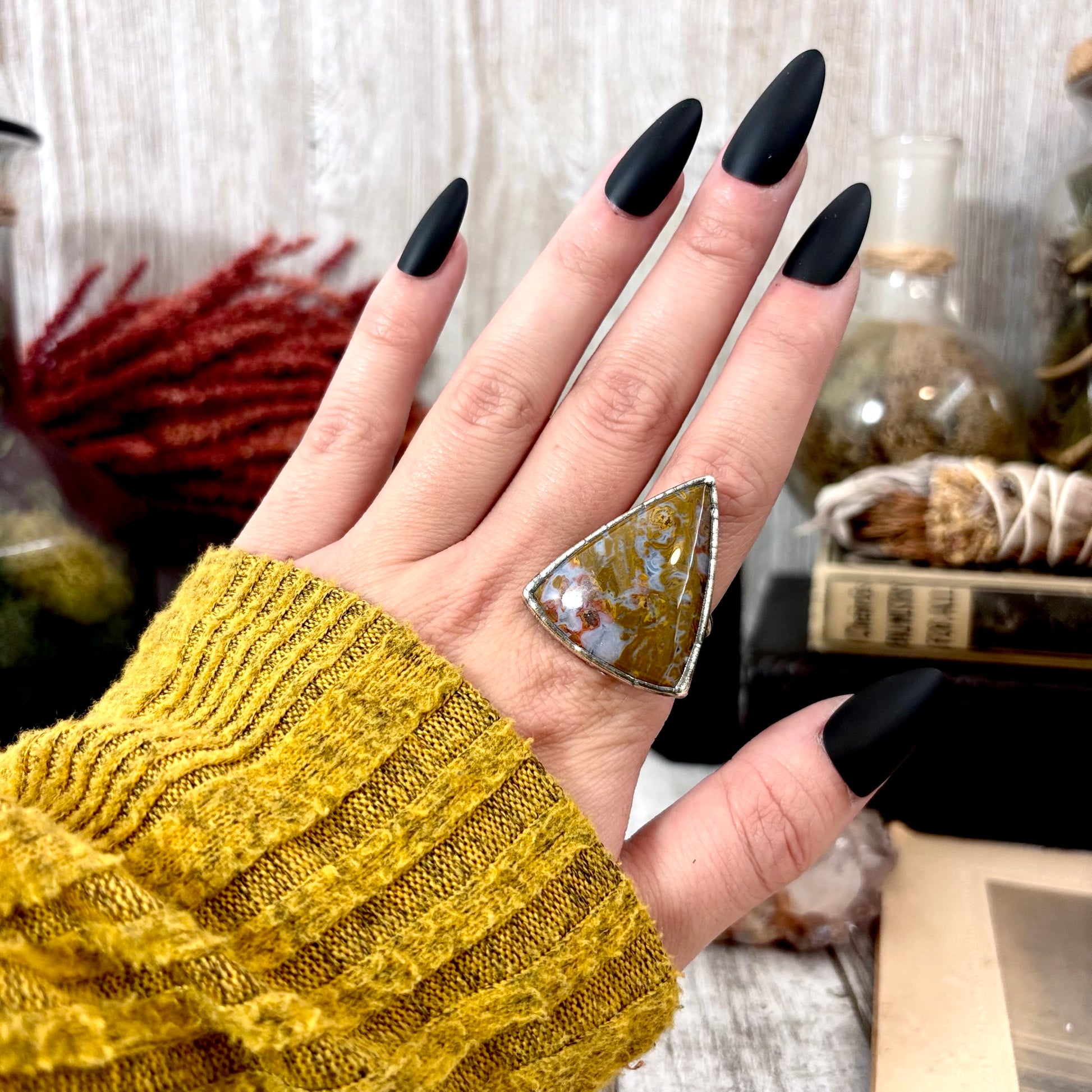 Petrified Wood Crystal Ring Fine Silver Size 8 / Foxlark Collection - One of a Kind