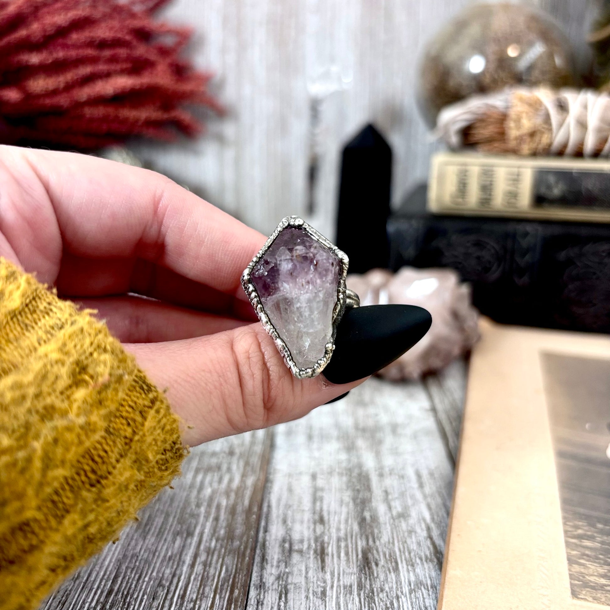 Raw Amethyst Crystal Ring Fine Silver Size 7 / Foxlark Collection - One of a Kind