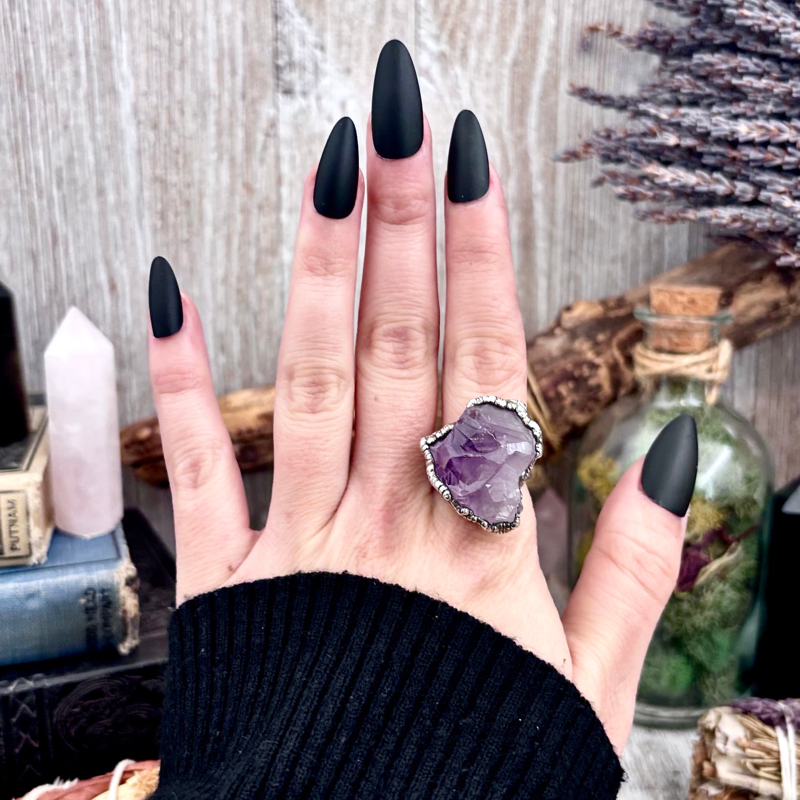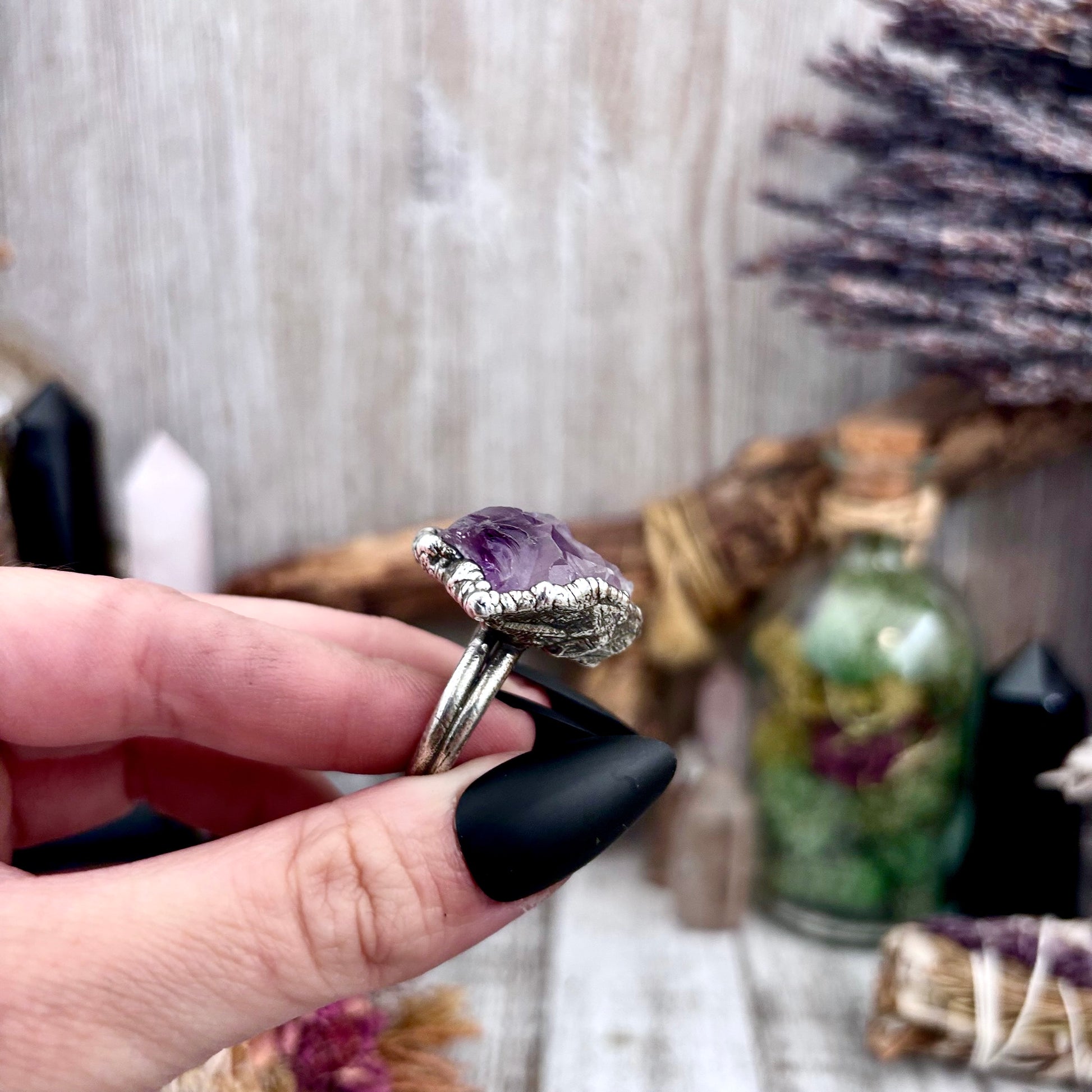 Raw Amethyst Crystal Ring Set in Fine Silver Size 8 / Foxlark Collection - One of a Kind