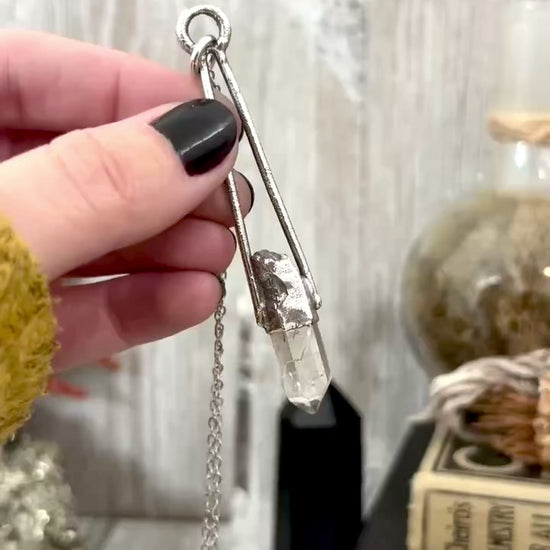 Raw Clear Quartz set in fine silver and given a vintage patina turning it into a unique crystal statement necklace. This handmade crystal necklace is perfect worn alone or layered with with other pieces.