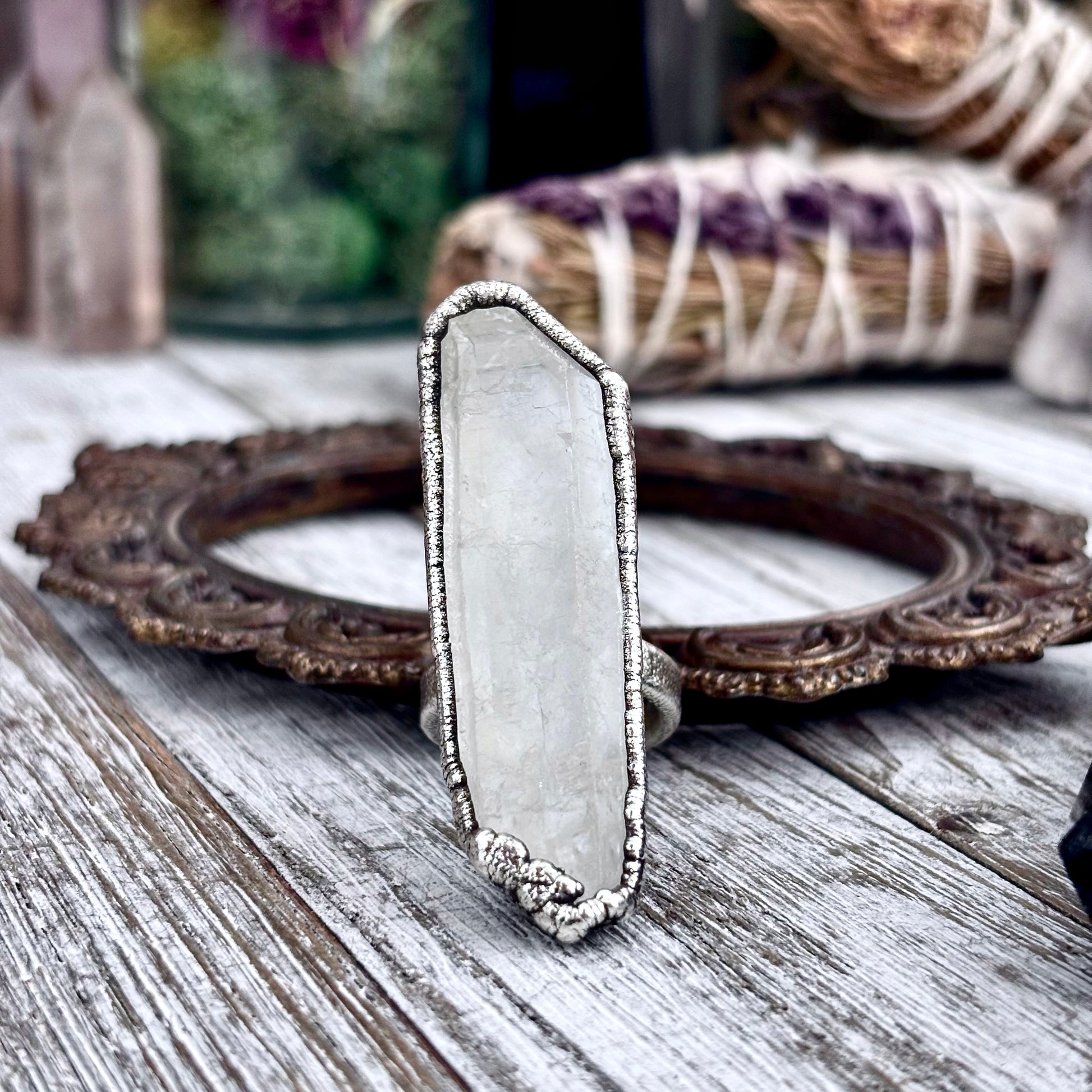 Raw Clear Quartz Crystal Ring Set in Fine Silver Size 8.5 / Foxlark Collection - One of a Kind
