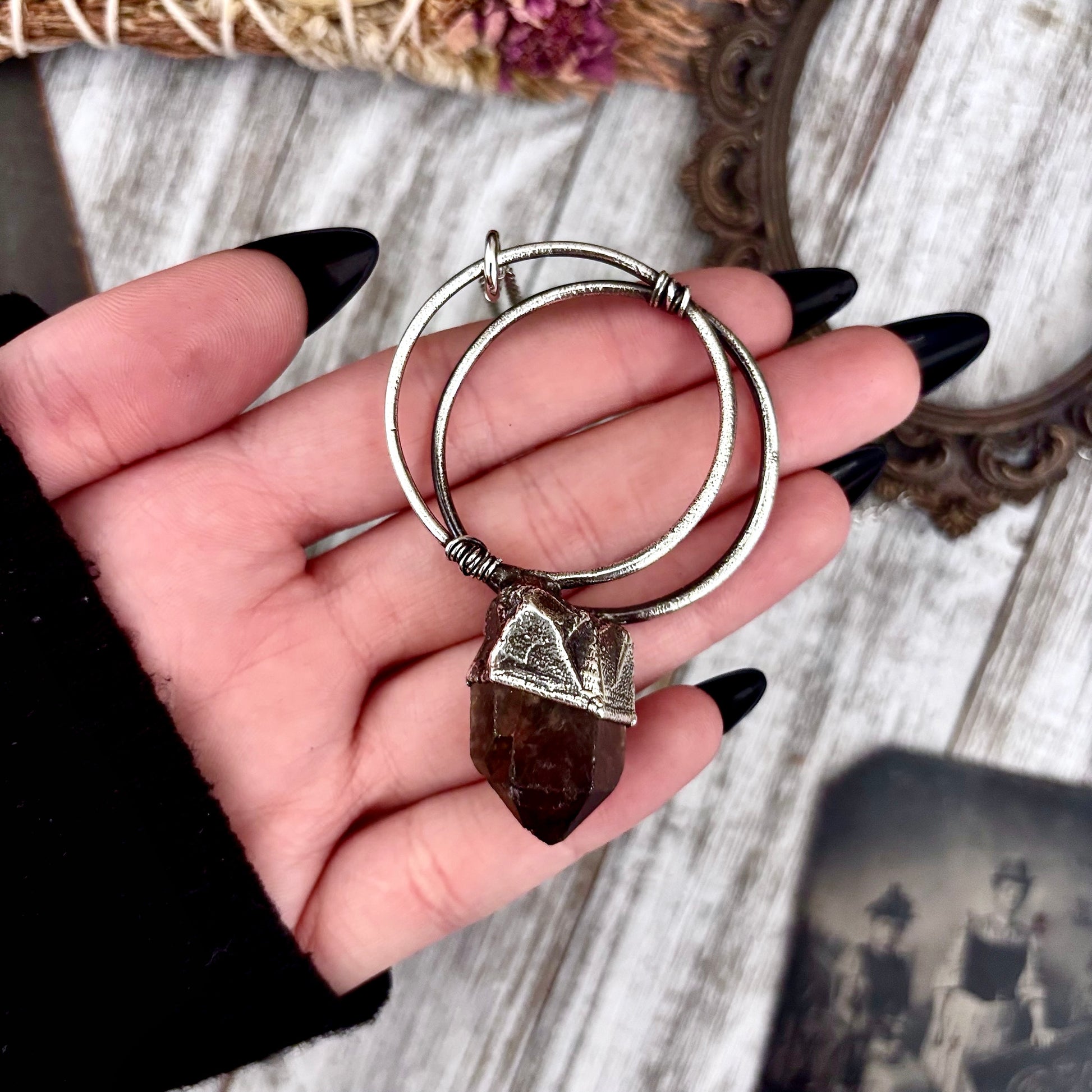 Get in touch with our contact page or you can always contact us on our FOXLARK Instagram www.instagram.com/foxlark or Facebook pages www.Facebook.com/foxlark , or through email foxlarkalchemy@gmail.comThis necklace features a Smoky Quartz crystal set in fine silver. Known for its grounding energy, Smoky Quartz promotes protection, balance, and emotional strength. Designed for those with an alternative style, it adds a bold touch while supporting stability and transformation.