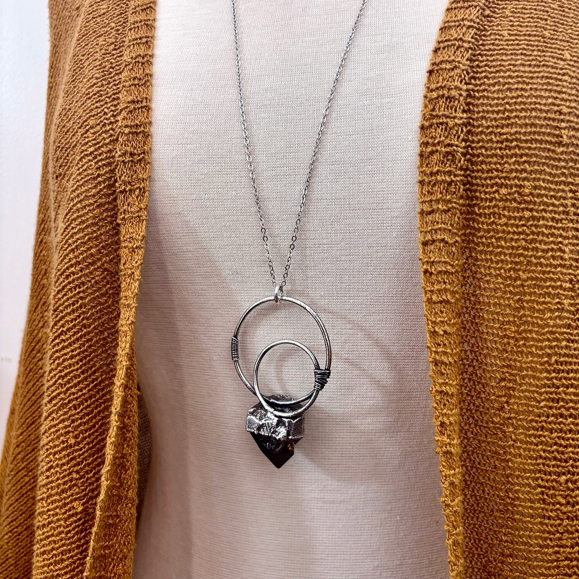 Get in touch with our contact page or you can always contact us on our FOXLARK Instagram www.instagram.com/foxlark or Facebook pages www.Facebook.com/foxlark , or through email foxlarkalchemy@gmail.comThis necklace features a Smoky Quartz crystal set in fine silver. Known for its grounding energy, Smoky Quartz promotes protection, balance, and emotional strength. Designed for those with an alternative style, it adds a bold touch while supporting stability and transformation.