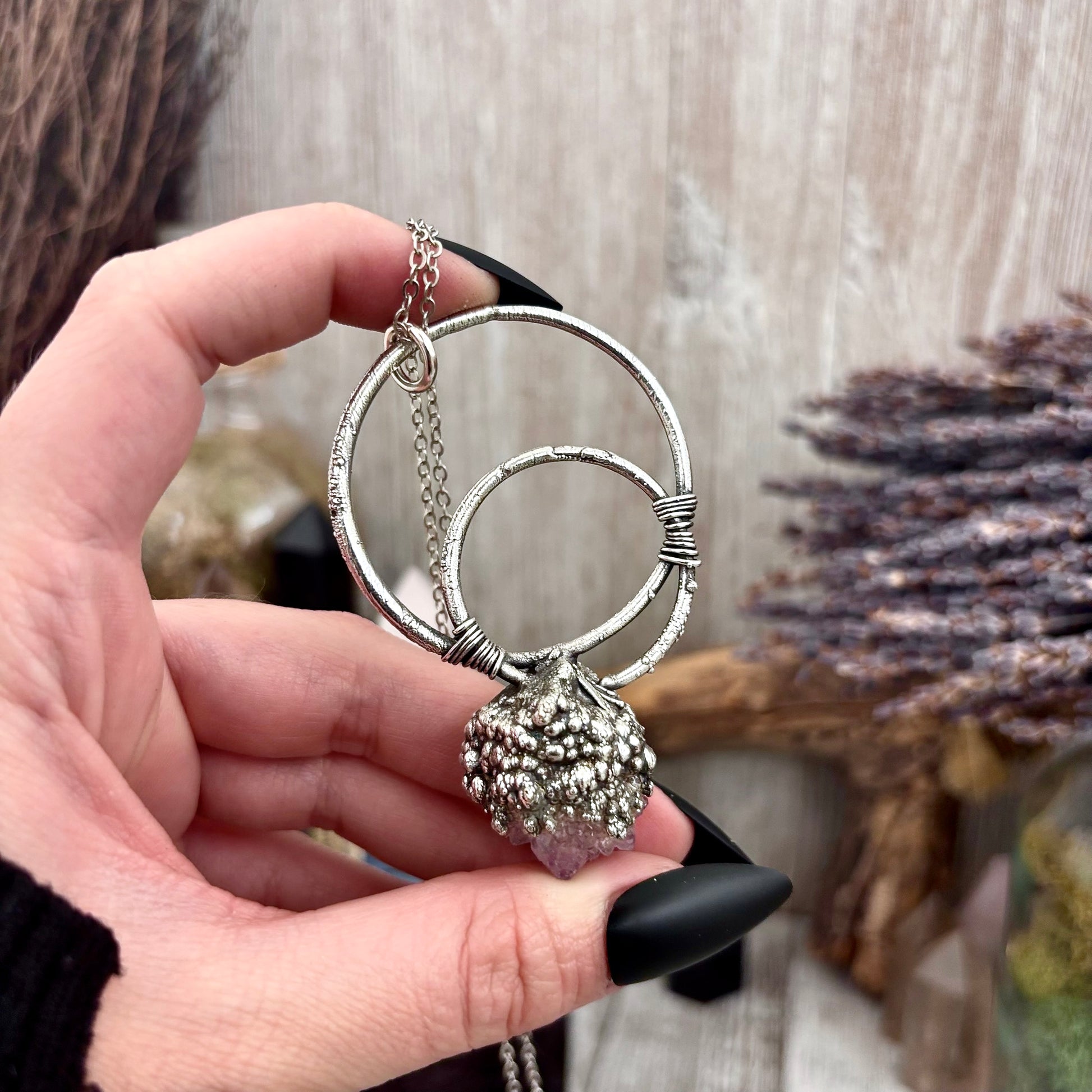 Get in touch with our contact page or you can always contact us on our FOXLARK Instagram www.instagram.com/foxlark or Facebook pages www.Facebook.com/foxlark , or through email foxlarkalchemy@gmail.comThis necklace features a Spirit Quartz crystal set in fine silver. Known for its harmonizing energy, Spirit Quartz promotes spiritual growth, clarity, and unity. Designed for those with an alternative style, it supports transformation and higher consciousness.