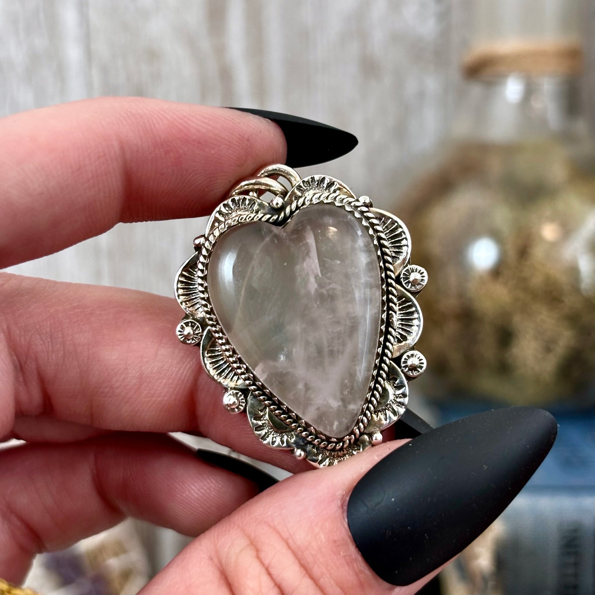Rose Quartz Crystal Heart Necklace in Sterling Silver -Designed by FOXLARK Collection