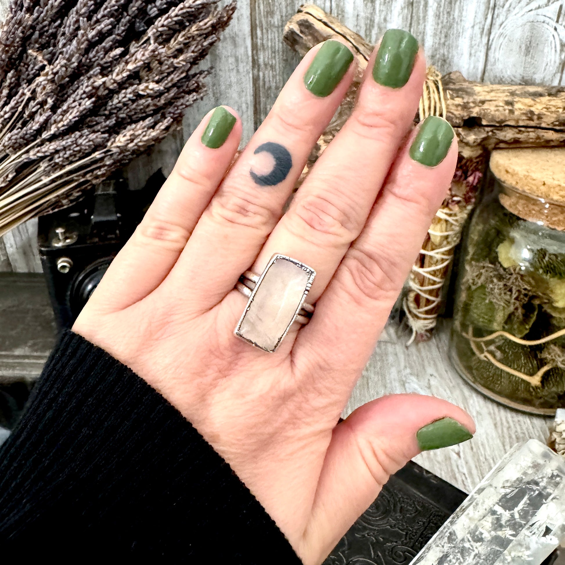 Rose Quartz Crystal Ring Fine Silver Size 10 / Foxlark Collection - One of a Kind