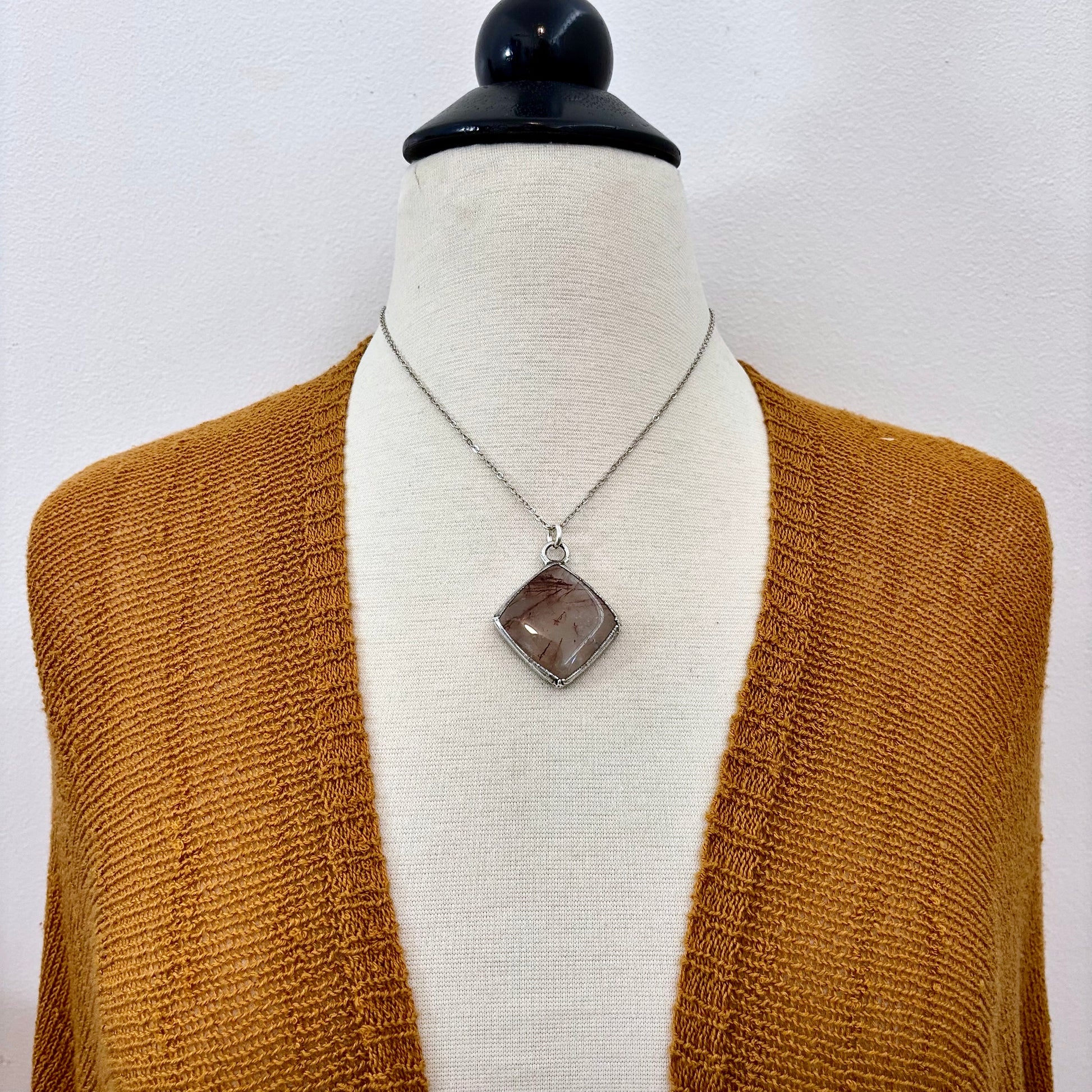 Get in touch with our contact page or you can always contact us on our FOXLARK Instagram www.instagram.com/foxlark or Facebook pages www.Facebook.com/foxlark , or through email foxlarkalchemy@gmail.comBold and full of charged energy—this fine silver necklace showcases Rutilated Quartz, its striking inclusions catching the light and channeling focus, strength, and elevated vibes in a fierce crystal statement piece.