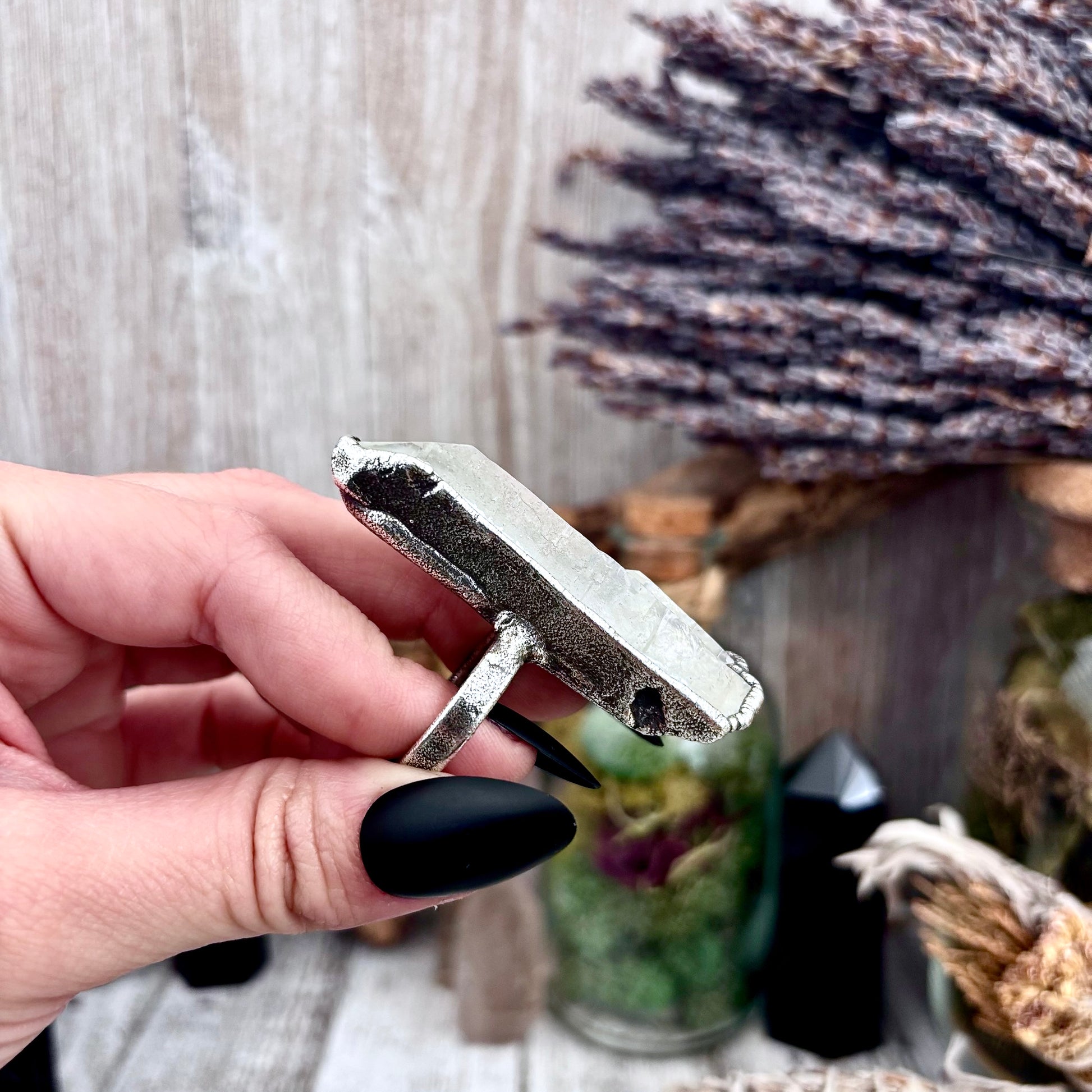 Raw Clear Quartz Crystal Ring Set in Fine Silver Size 8.5 / Foxlark Collection - One of a Kind