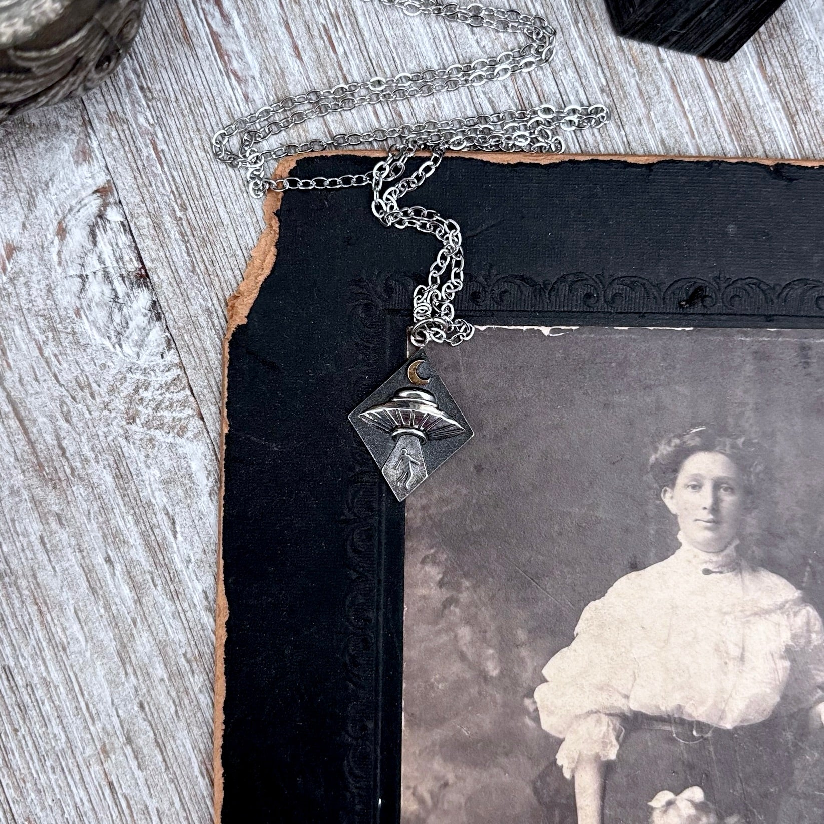 Tiny Talisman Collection - Sterling Silver UFO Abduction Necklace Pendant /